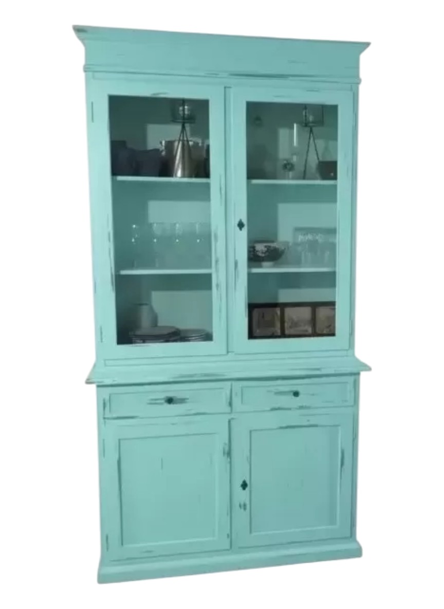 Cristalliera 2 porte 2 cassetti arte povera legno azzurro consumato 105x42x206