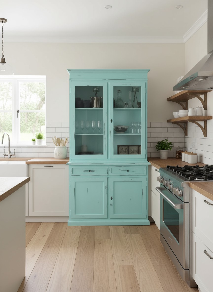 Cristalliera in stile shabby elegante e con proporzioni perfette per qualsiasi stanza, adatta per contenere al suo interno stoviglie : bicchieri , piatti , tazze e servizi da the o caffè risaltando tutto quanto esposto sui ripiani. Elemento d' arredo adatto per salotti e nelle cucine, esteticamente appagante e allo stesso tempo funzionale e spazioso.
