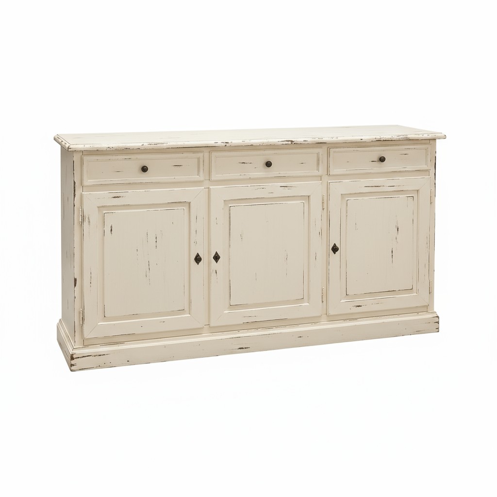 Madia credenza 3 porte legno shabby avorio consumato 156x42x85