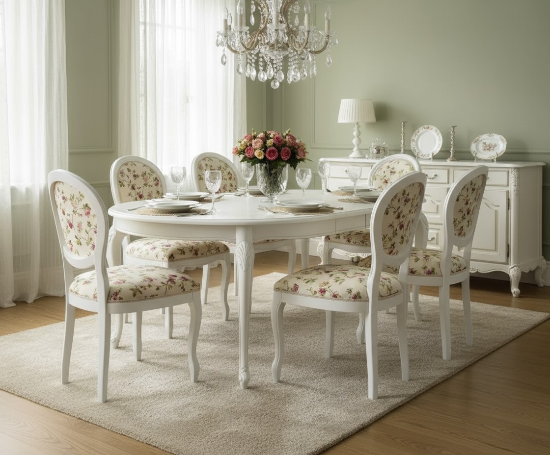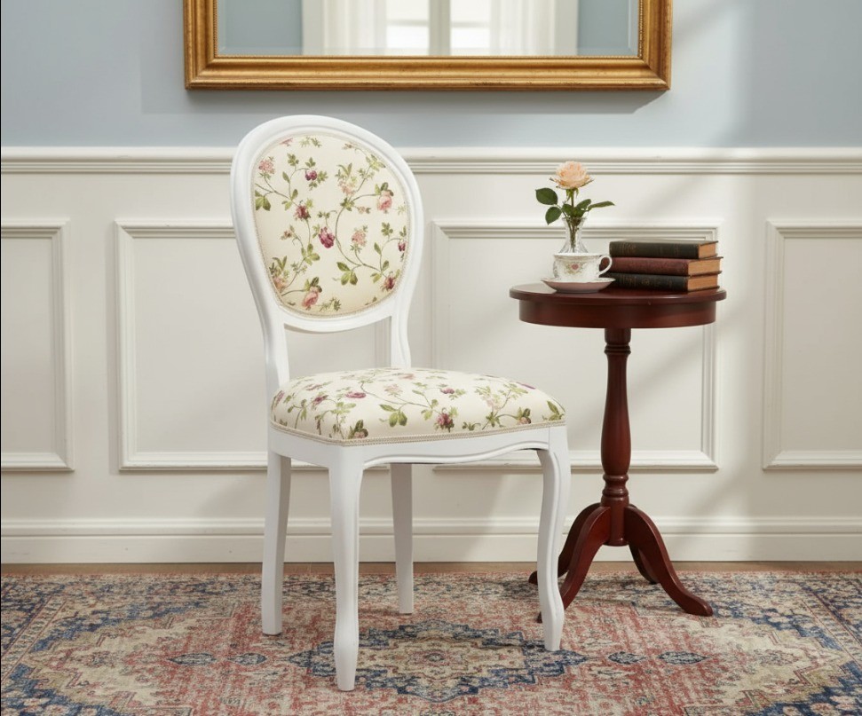 Sedia shabby legno imbottita tessuto floreale bianca 50x47x100