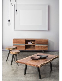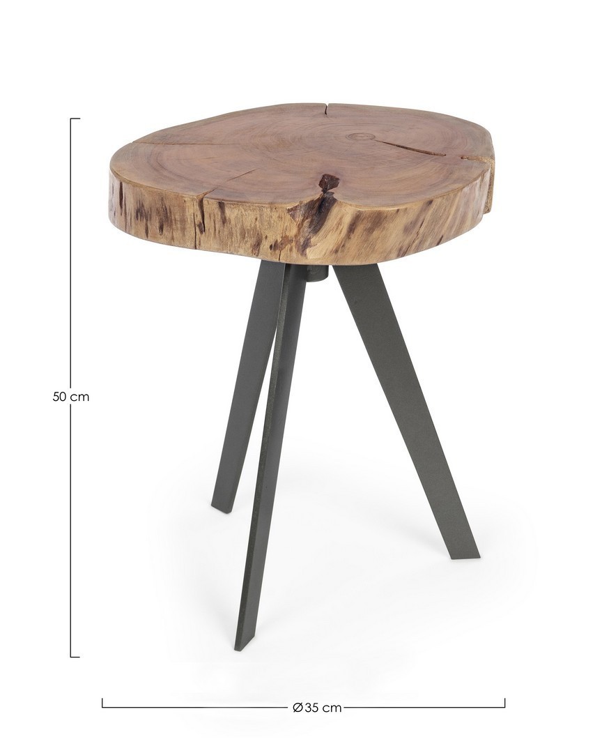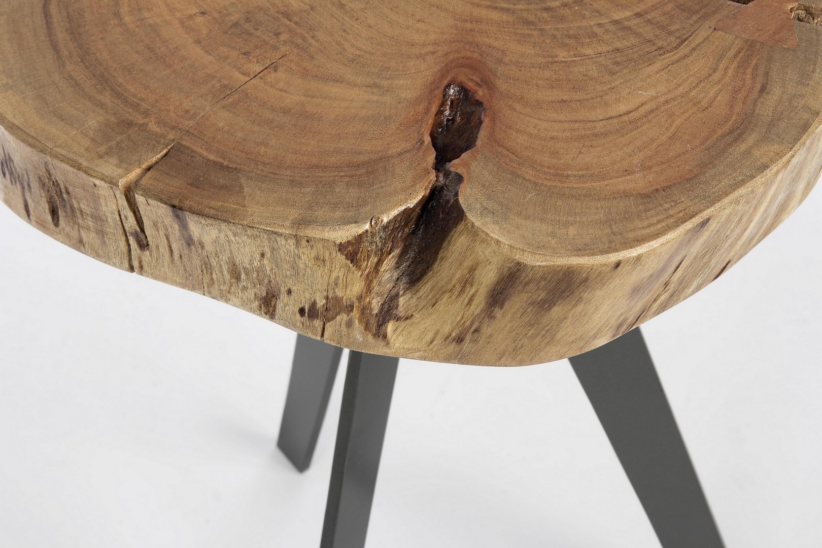 PIANO IN LEGNO D'ACACIA (SEZIONI ORIGINALI DI TRONCO), GAMBE IN ACCIAIO VERNICIATO A POLVERE EPOSSIDICA. FINITURA A BASE DI VERNICE POLIURETANICA. LE FORME E LE MISURE CREATE DAL LEGNO SONO SOLO INDICATIVE. TUTTI I PRODOTTI SARANNO DIVERSI L'UNO DALL'ALTRO.
