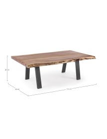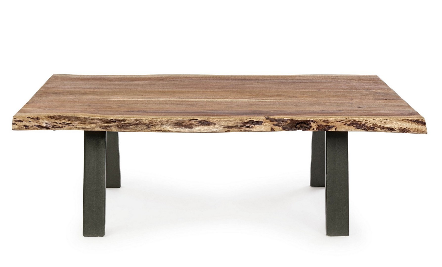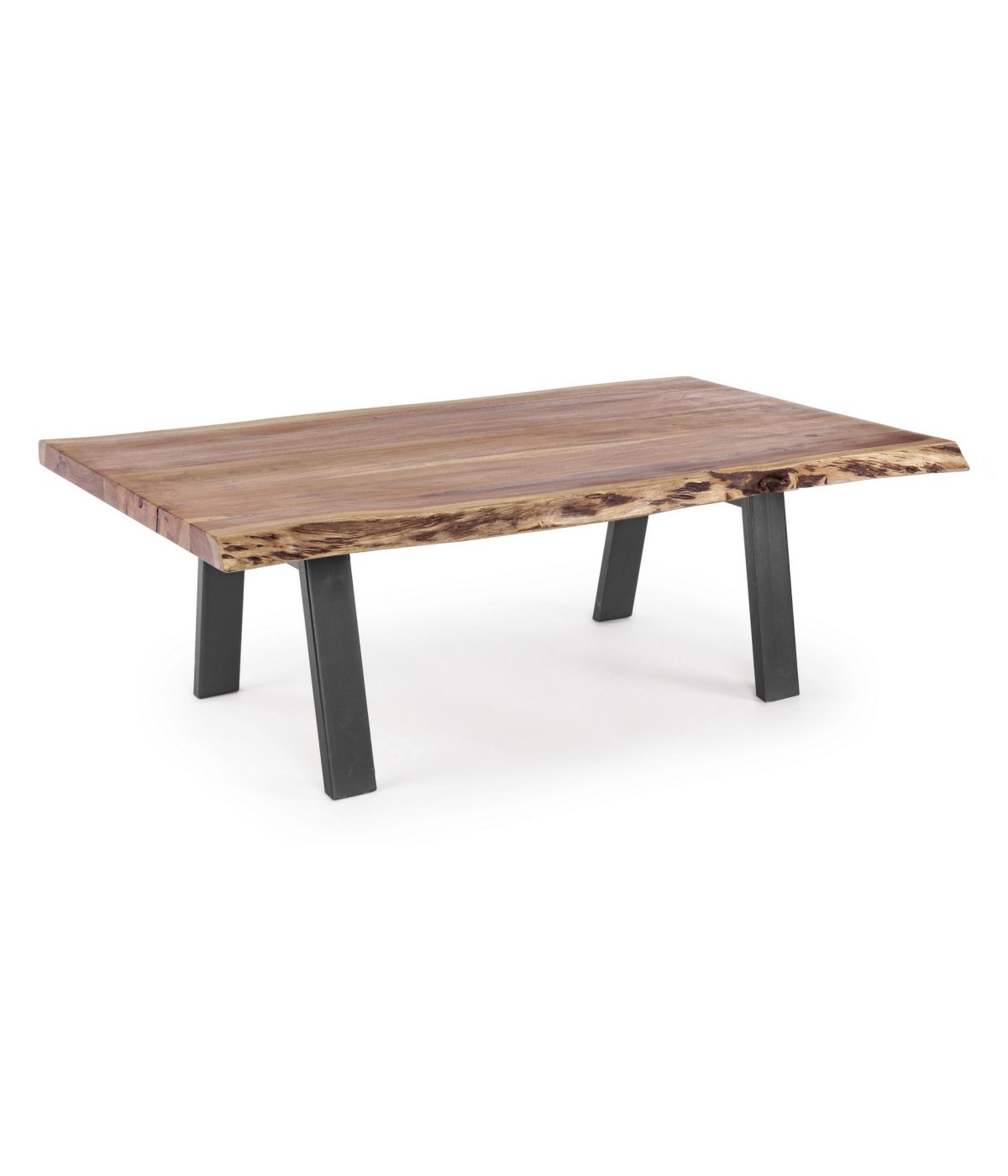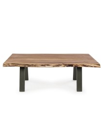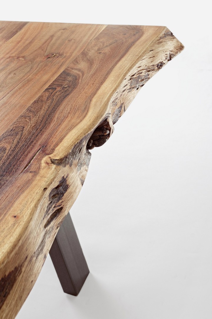 GAMBE IN ACCIAIO VERNICIATO A POLVERE EPOSSIDICA. PIANO IN LEGNO DI ACACIA CON BORDI IRREGOLARI (EFFETTO LEGNO VIVO). FINITURA A BASE DI VERNICE POLIURETANICA. ESSENDO UN PIANO LAVORATO A MANO, LE FORME E LE MISURE DEL LEGNO SONO SOLO INDICATIVE. TUTTI I PRODOTTI SARANNO DIVERSI L'UNO DALL'ALTRO. GAMBE DA ASSEMBLARE.