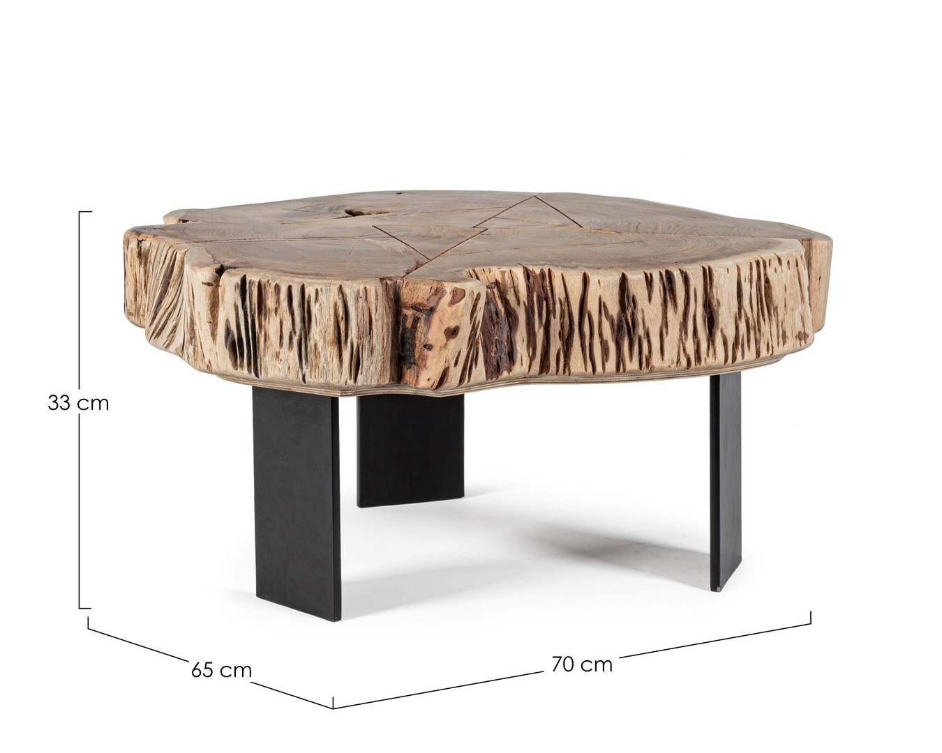 PIANO IN LEGNO DI ACACIA (SEZIONE ORIGINALE DI TRONCO). FINITURA A BASE DI VERNICE POLIURETANICA. GAMBE IN ACCIAIO VERNICIATO A POLVERE EPOSSIDICA. LE FORME E LE MISURE CREATE DAL LEGNO SONO SOLO INDICATIVE. TUTTI I PRODOTTI SARANNO DIVERSI L'UNO DALL'ALTRO. GAMBE DA ASSEMBLARE.