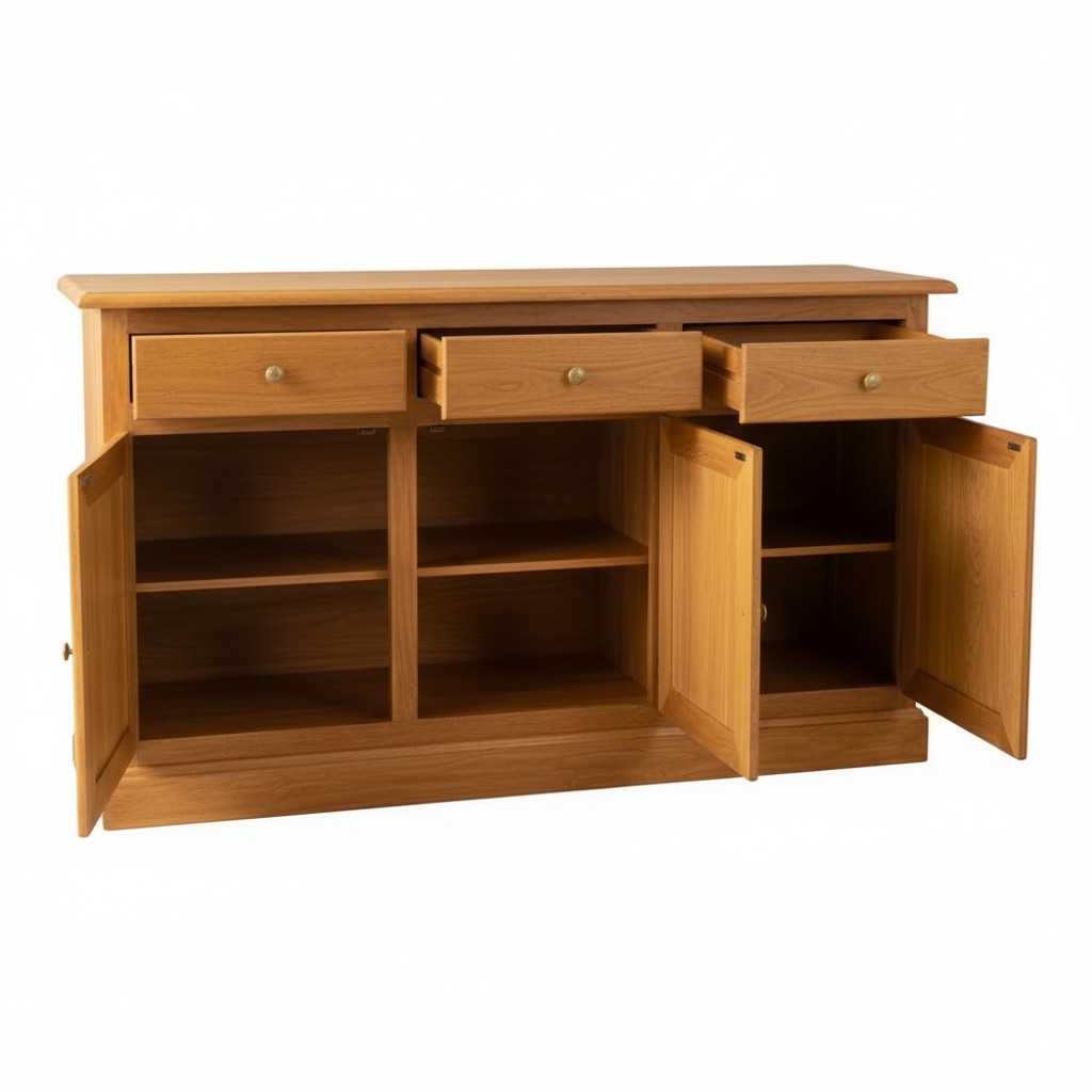 Credenza in stile rustico dalle linee classiche e tradizionali ma allo stesso tempo solida e robusta . Grazie ai suoi diversi scomparti interni che permettono di suddividere cibi , piatti , bicchieri e quanto altro si voglia aggiungere, sfruttando anche i cassetti per riporre strofinacci, posate e tovaglie. Ideale da posizionare nella taverna, all'ingresso della casa o nella zona living ottimizzando ogni minimo spazio.
