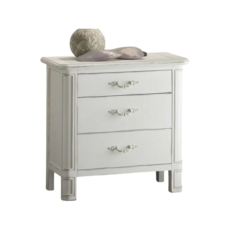 COMODINO IN LEGNO 3 CASSETTI SHABBY BIANCO CONSUMATO 59X42X61