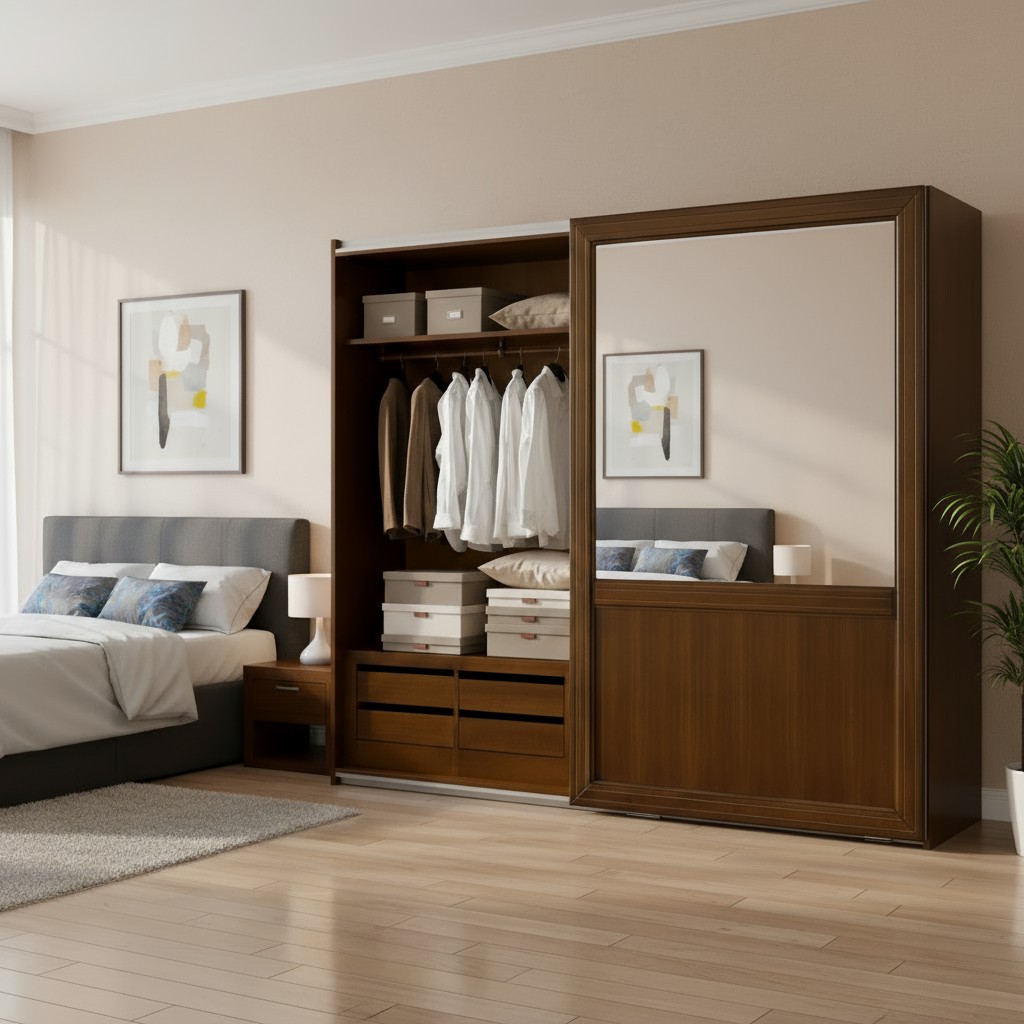 Armadio in legno classico solido e robusto che si contraddistingue per la sua capienza per contenere all'interno indumenti di qualsiasi tipo ,adatto per la zona notte .