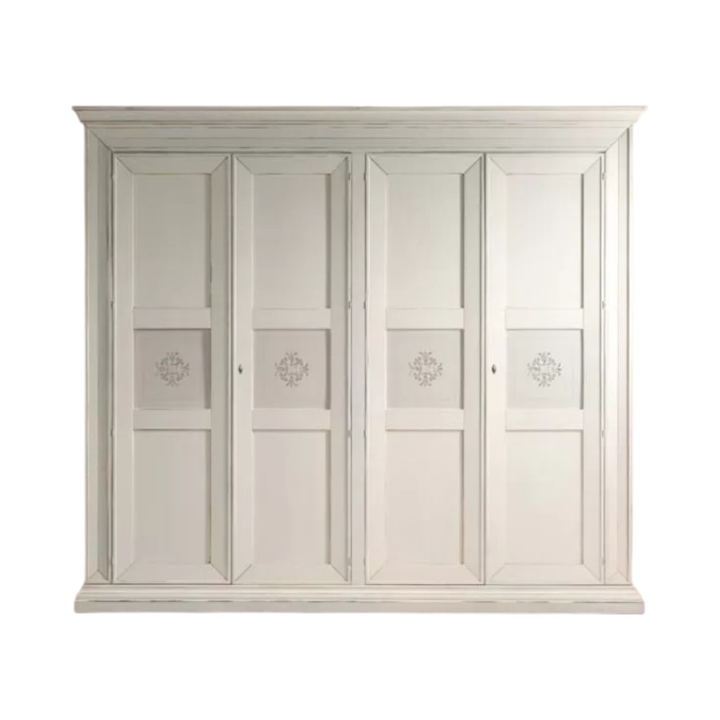 Armadio 4 porte decorate legno shabby bianco anticato 286x66x252