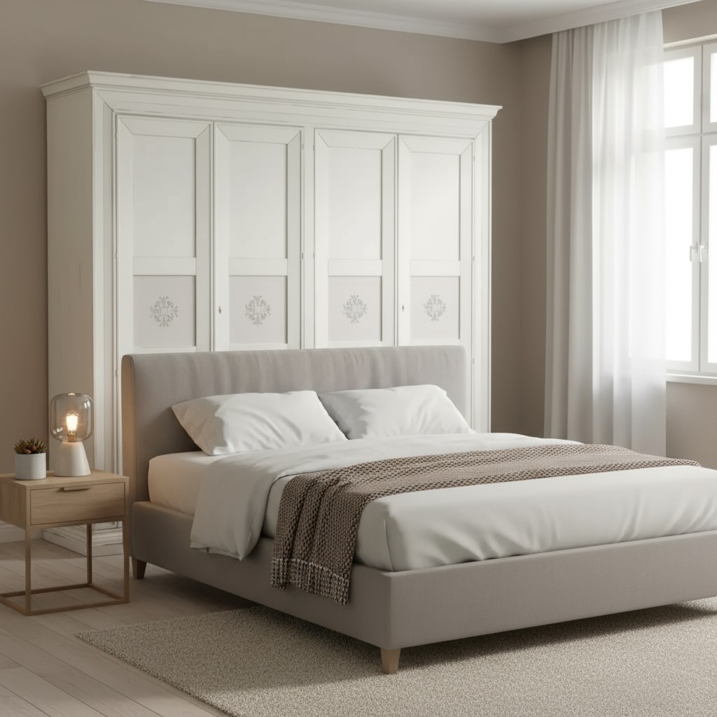 Armadio in legno shabby solido e robusto che si contraddistingue per la sua capienza per contenere all'interno indumenti di qualsiasi tipo ,adatto per la zona notte .