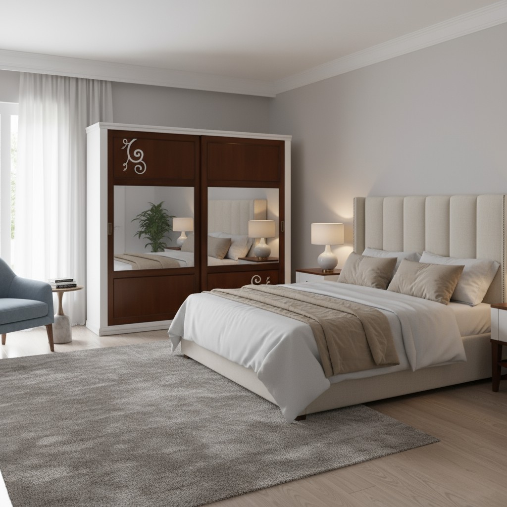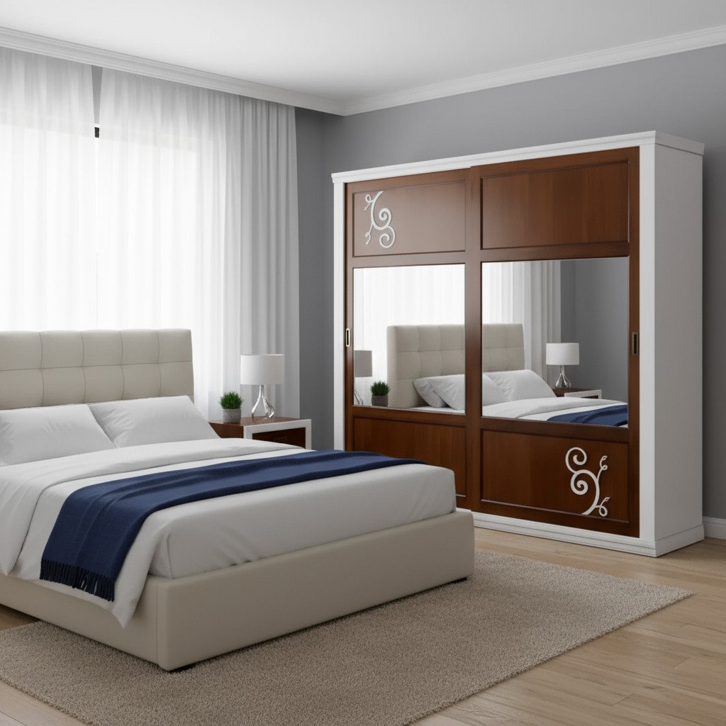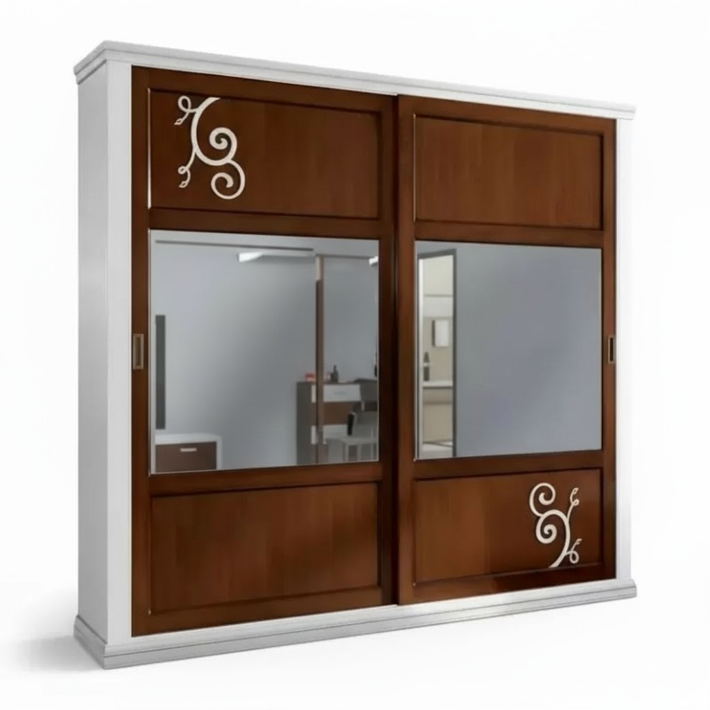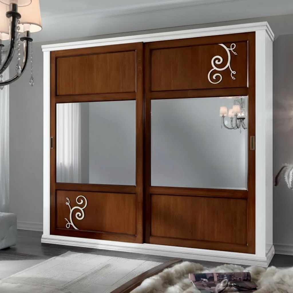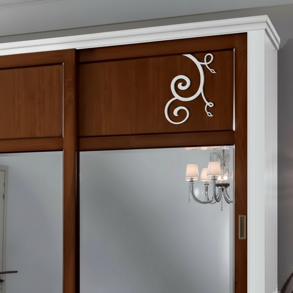 - 2 porte scorrevoli con vetri a specchio e rilievi decorati.