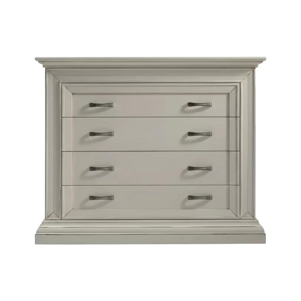 Cassettiera costruita in legno con struttura riquadrata e con angoli a becco di civetta e zoccolo a terra sagomato. Cassettiera dotata di cassetti per riporre all'occorrenza biancheria intima e oggetti. Trovano facilmente posto nella zona notte proteggendo con i suoi cassetti il suo contenuto all'interno. Unica nel suo genere con i cassetti racchiusi in una cornice dando un tocco a un' atmosfera dallo stile shabby.