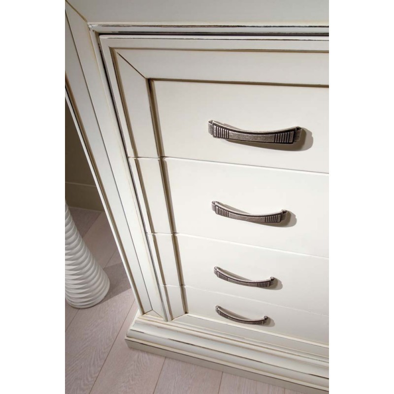 Comodino costruito in legno con struttura riquadrata con angoli a becco di civetta con zoccolo a terra sagomato. Comodino dotato di cassetti per riporre all'occorrenza biancheria intima e oggetti. Trovano facilmente posto nella zona notte proteggendo con i suoi cassetti il suo contenuto all'interno. Unico nel suo genere con i cassetti racchiusi in una cornice dando un tocco a un' atmosfera dallo stile classico.