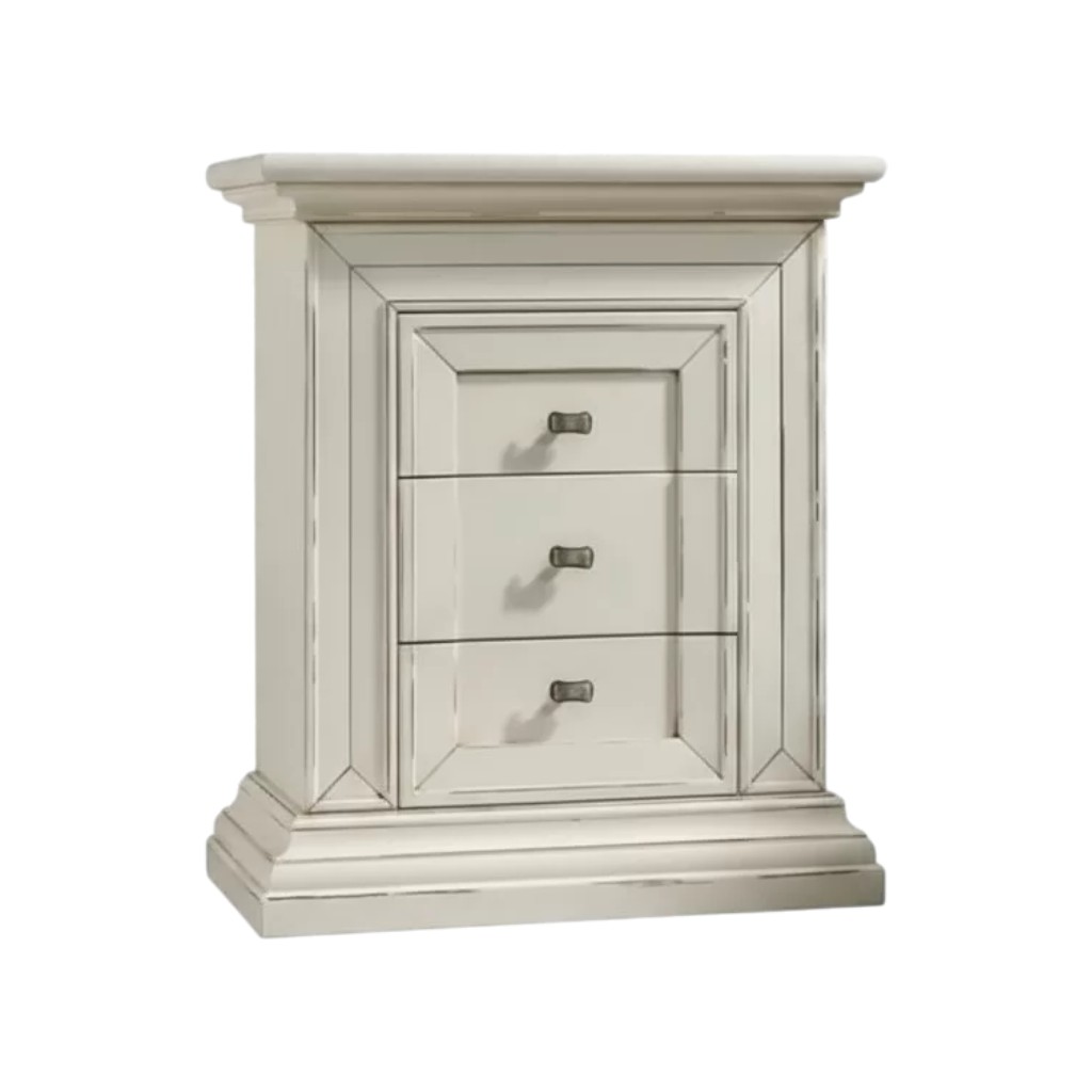 Comodino shabby 3 cassetti legno bianco anticato 62x43x76