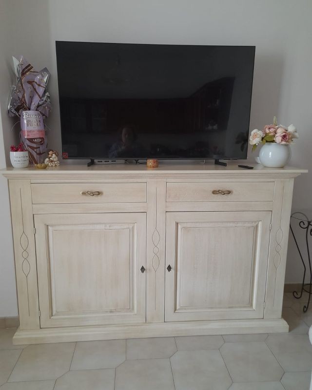 Credenza madia 2 porte legno shabby bianco anticato 177x48x110