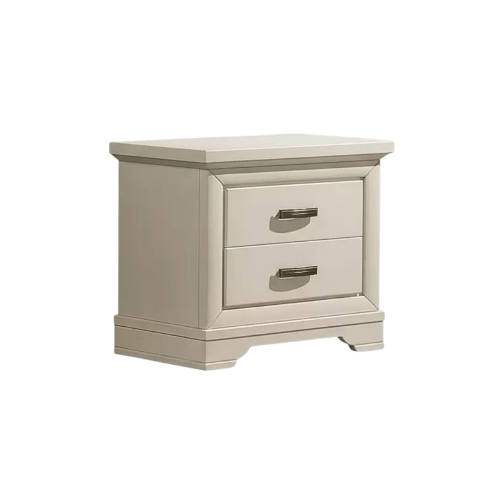Comodino costruito in legno con struttura sagomata e fianchi stondati. Comodino dotato di cassetti per riporre all'occorrenza biancheria intima e oggetti. Trovano facilmente posto nella zona notte proteggendo con i suoi cassetti il suo contenuto all'interno. Unico nel suo genere con i cassetti racchiusi all' interno in una cornice dando un tocco a un' atmosfera dallo stile romantico.