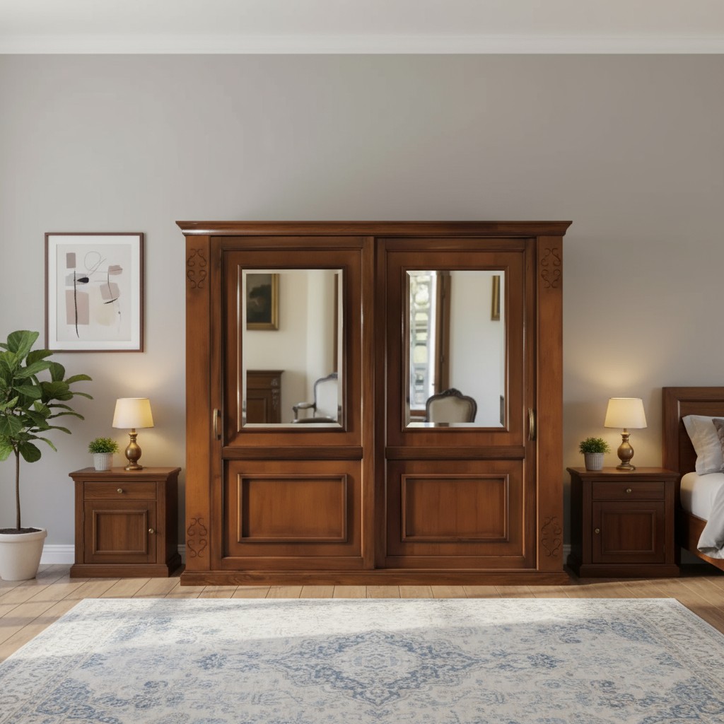 Armadio in legno classico solido e robusto che si contraddistingue per la sua capienza per contenere all'interno indumenti di qualsiasi tipo ,adatto per la zona notte .