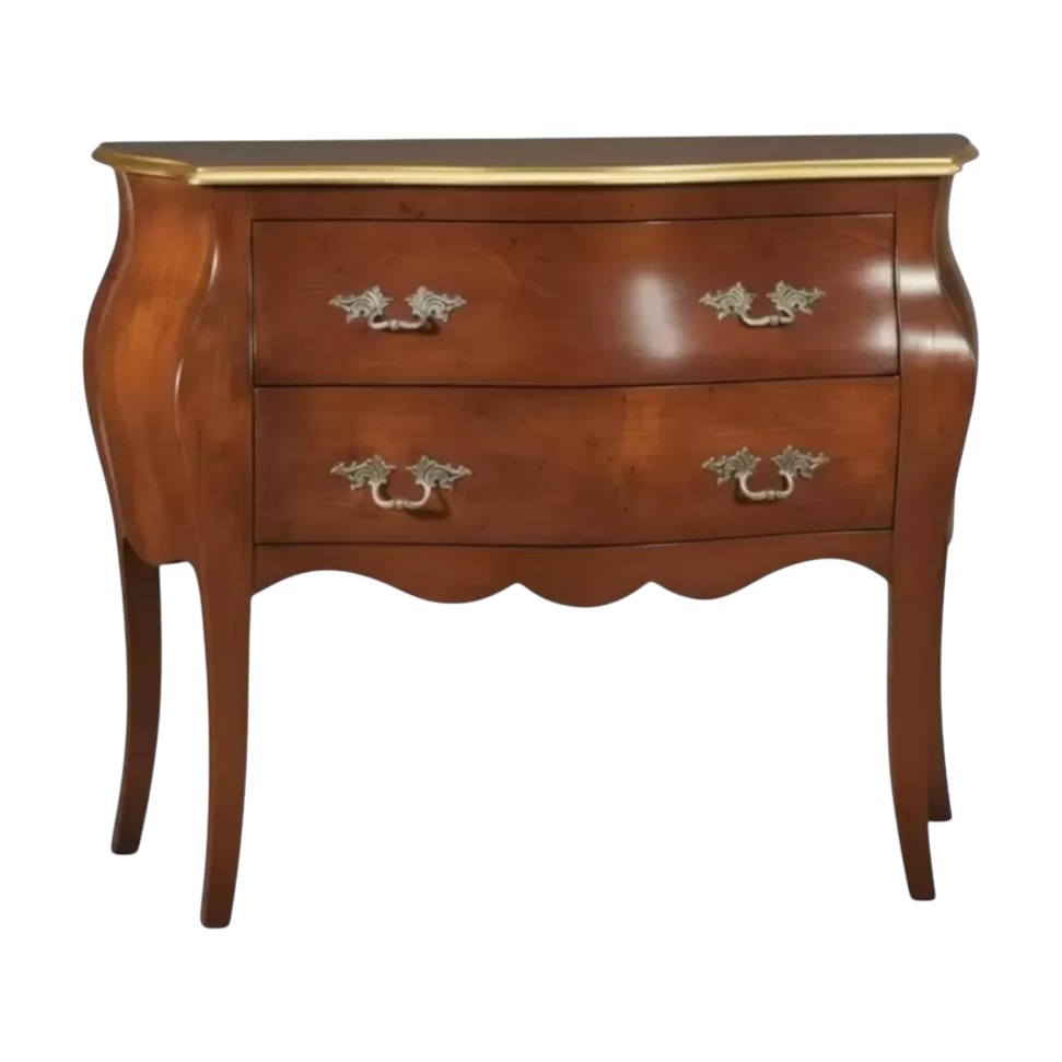 Cassettiera bombata 2 cassetti legno tinta noce oro 105x42x85