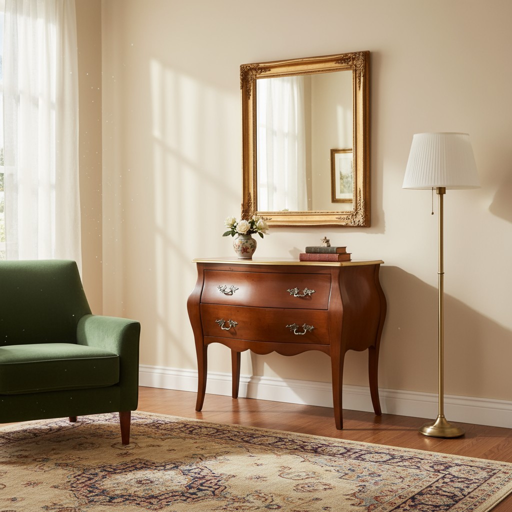 Cassettiera costruita in legno con fianchi e frontale dei cassetti sagomati. Cassettiera con 2 cassetti trova facilmente posto nella zona notte o zona giorno proteggendo con i suoi cassetti il suo contenuto all'interno. Unica nel suo genere con le sue linee sagomate dando un tocco a un' atmosfera dallo stile classico.