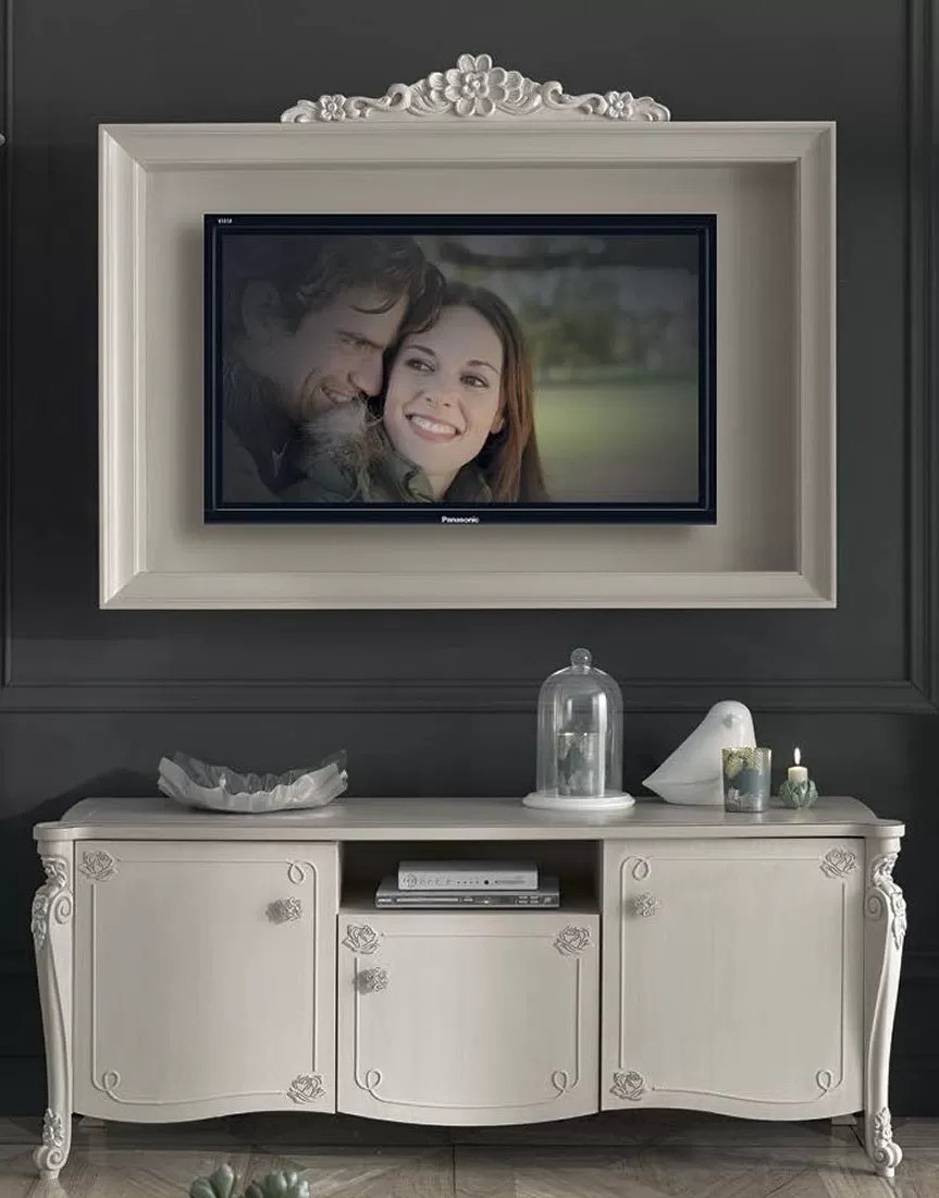 Cornice porta tv legno barocca shabby bianco 155x30x115