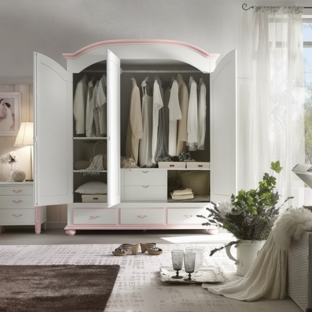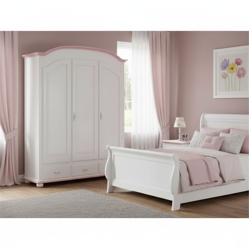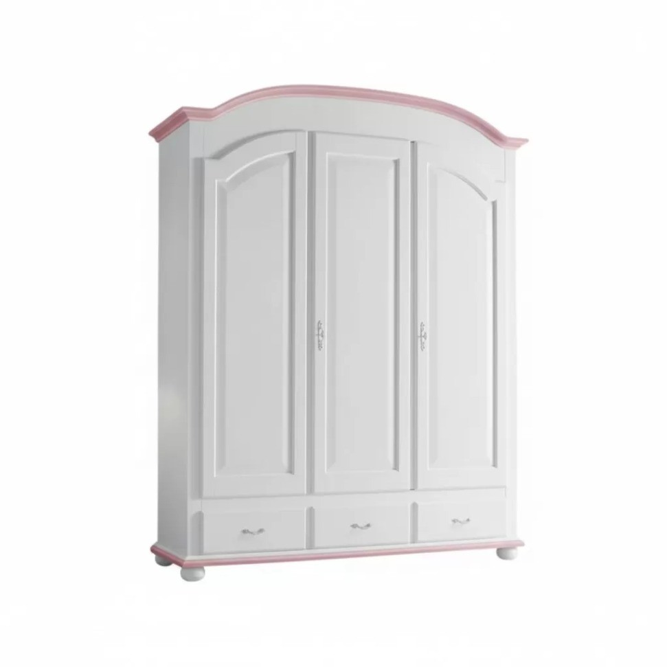 Armadio shabby 3 ante legno bianco filo rosa 181x61x224