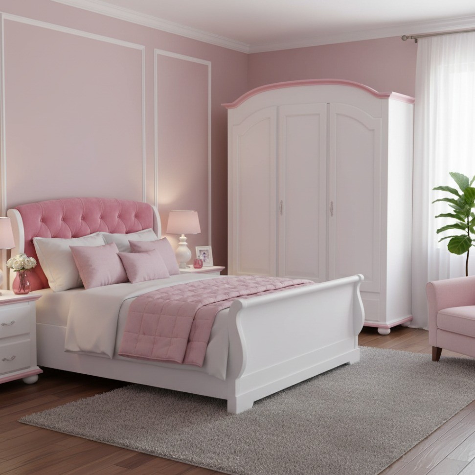 Finitura: Laccato bianco omogeneo con filetti rosa