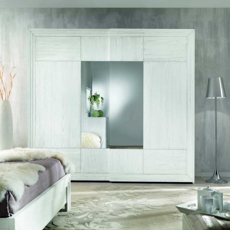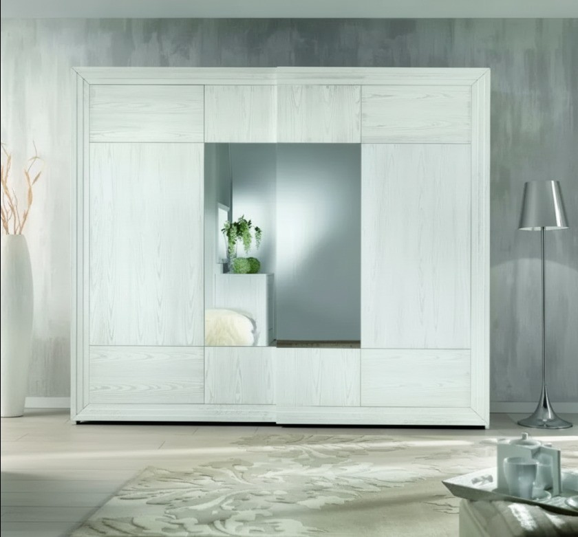 Armadio 2 porte scorrevoli legno frassino shabby bianco 275x60x248