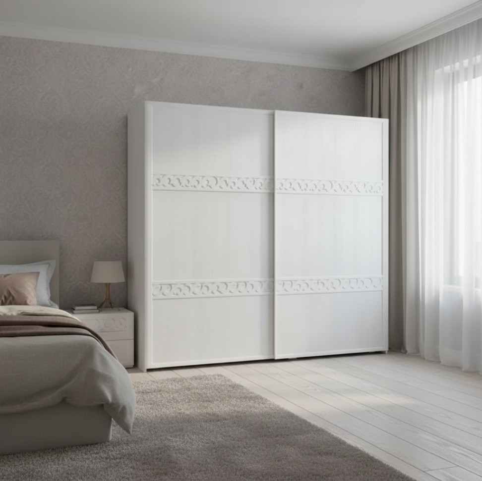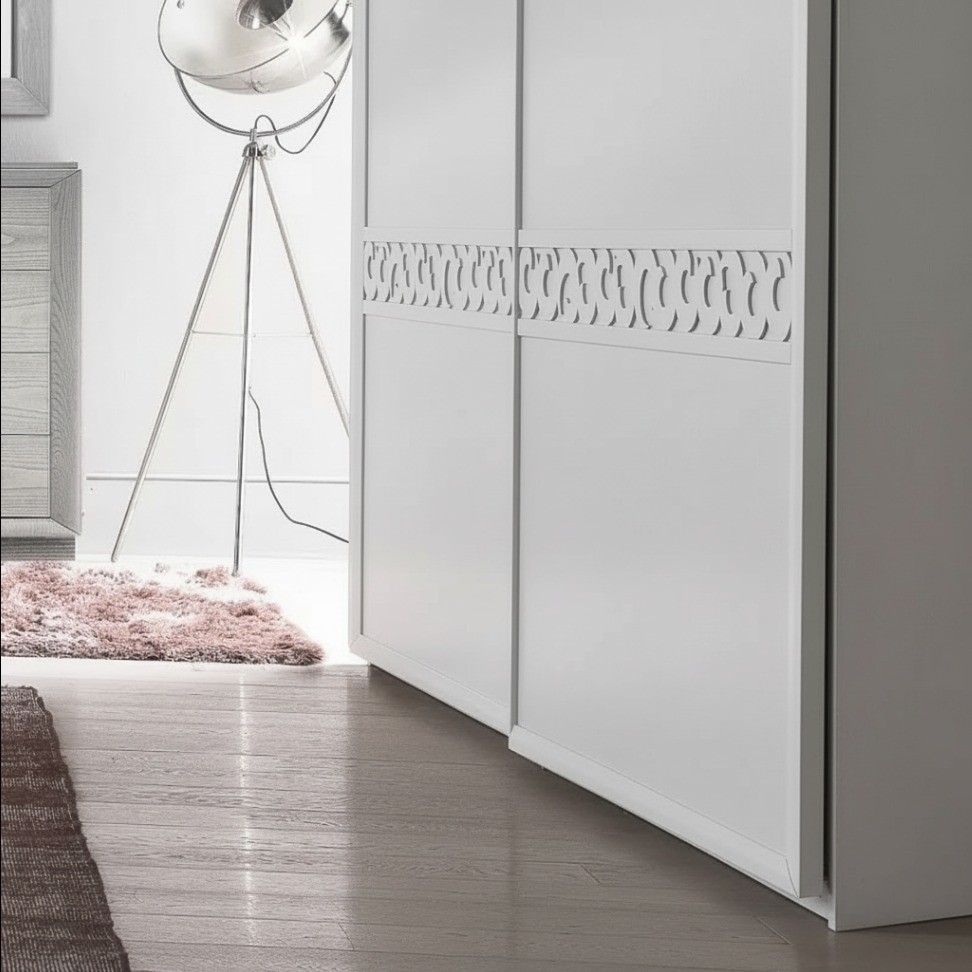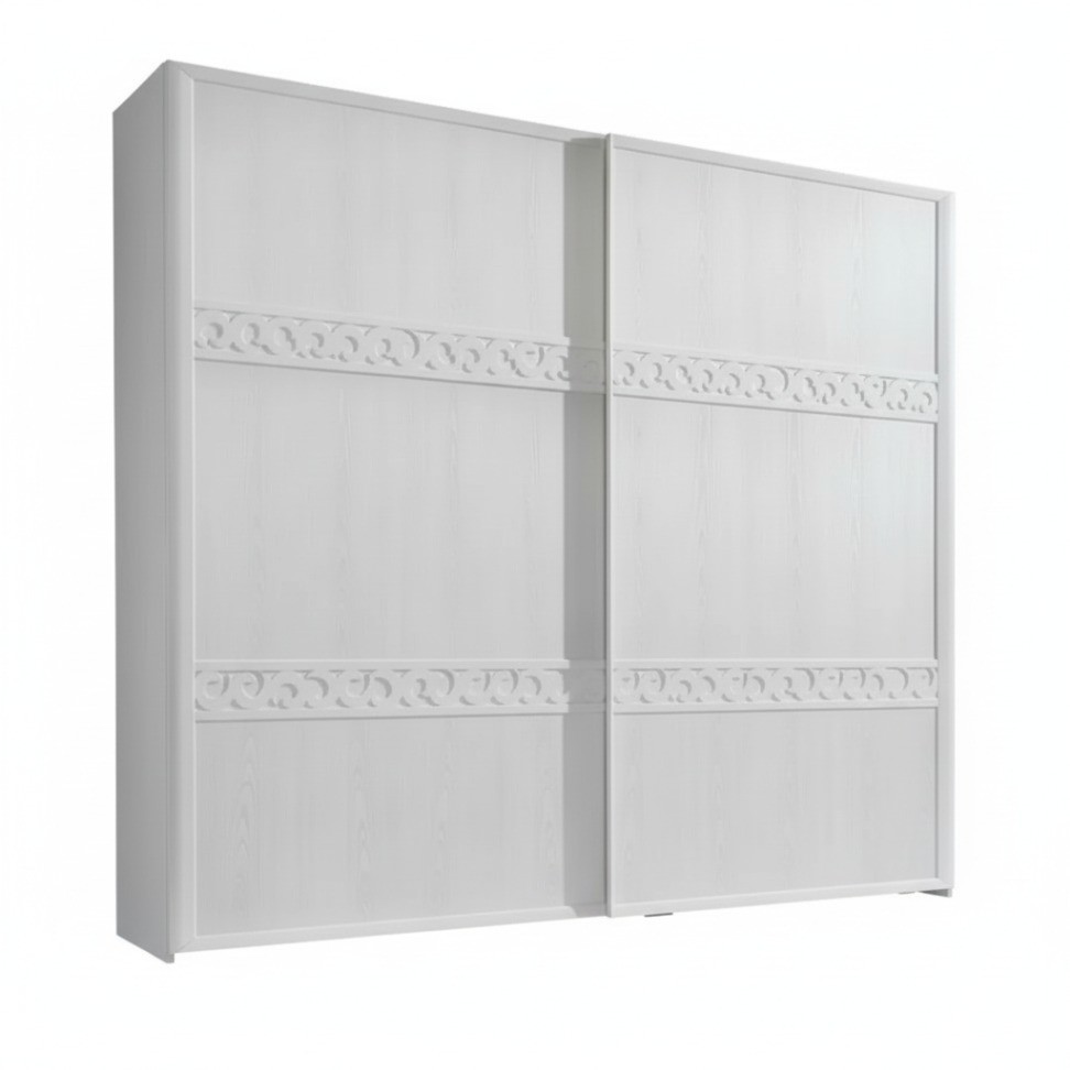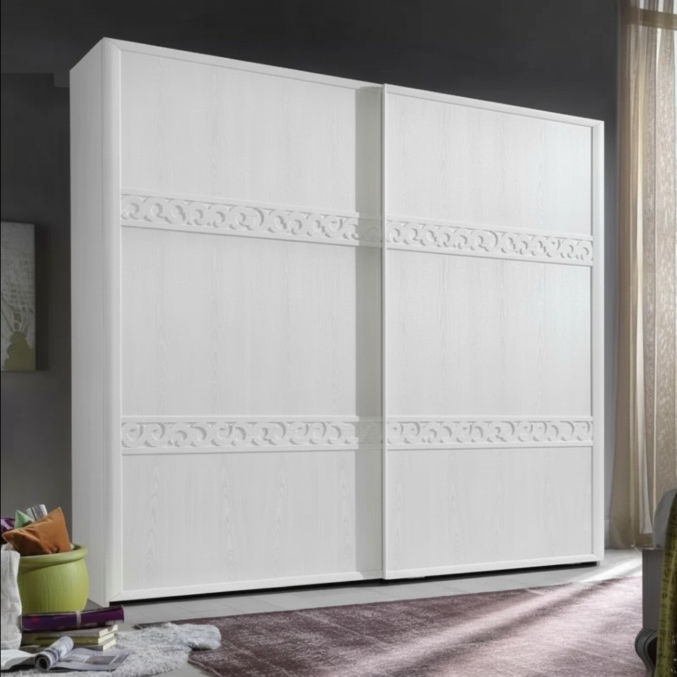 Armadio 2 porte scorrevoli intaglio legno frassino bianco 274x65x248