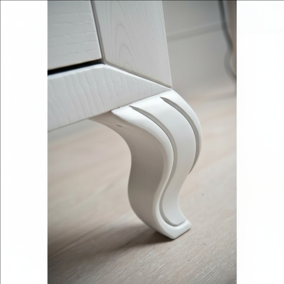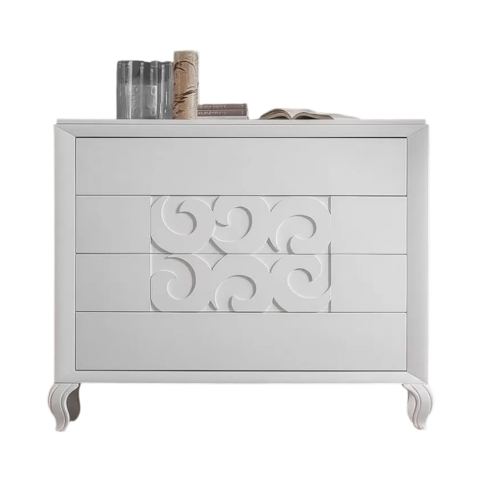 Cassettiera 4 cassetti legno frassino bianco decori intagliati 125x56x108
