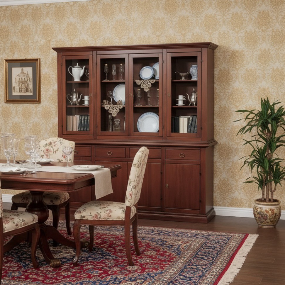 I mobili arrivano montati, da fissare solamente i pomoli e le gambe del tavolo( per completare il montaggio della cristalliera basta posare l'alzata sopra alla base che arrivano in 2 colli separati