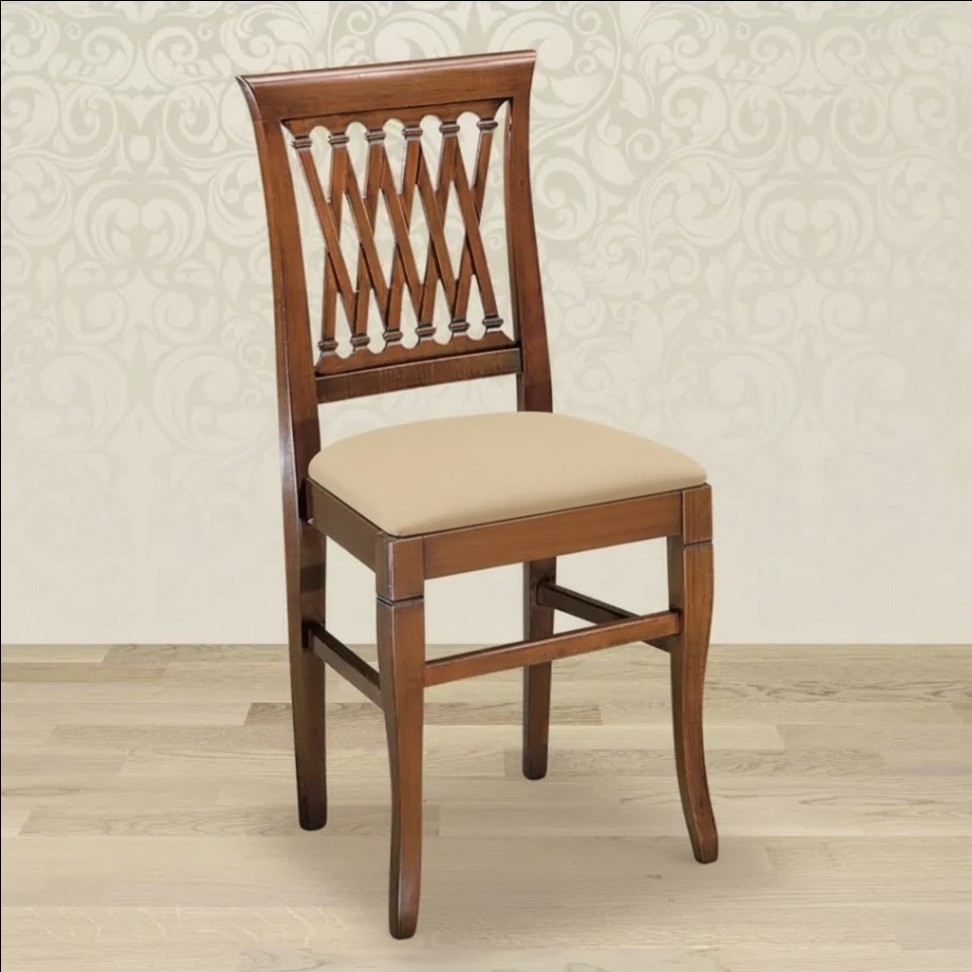 Opzione sedia: seduta legno - seduta paglia - seduta imbottita con tessute beige -