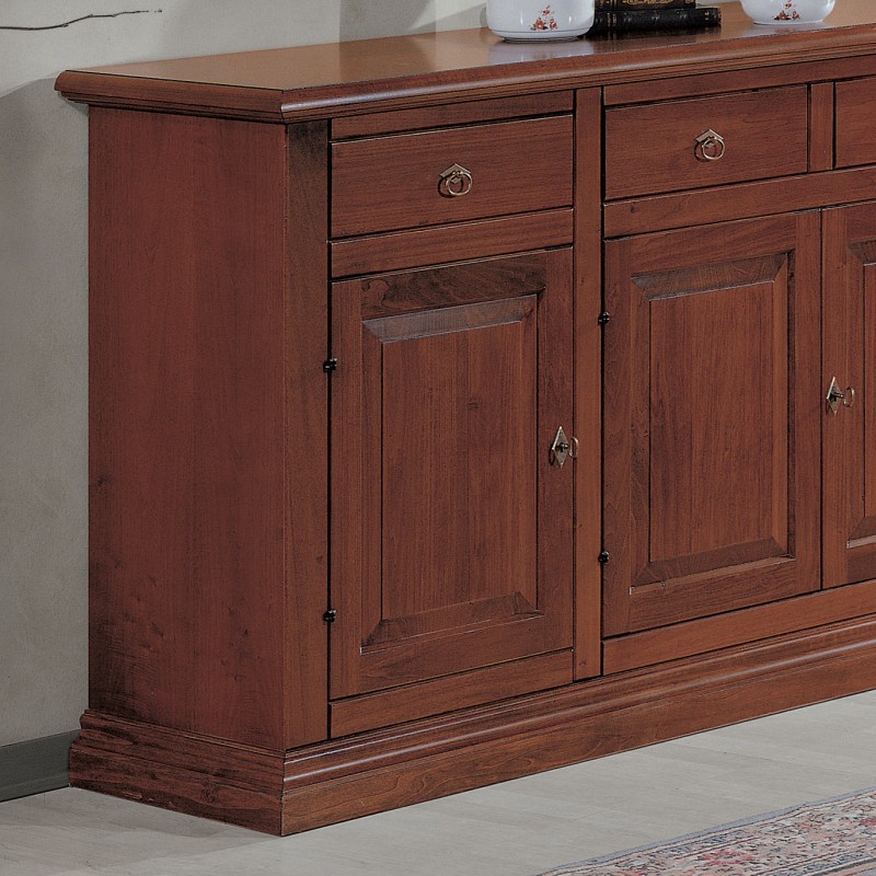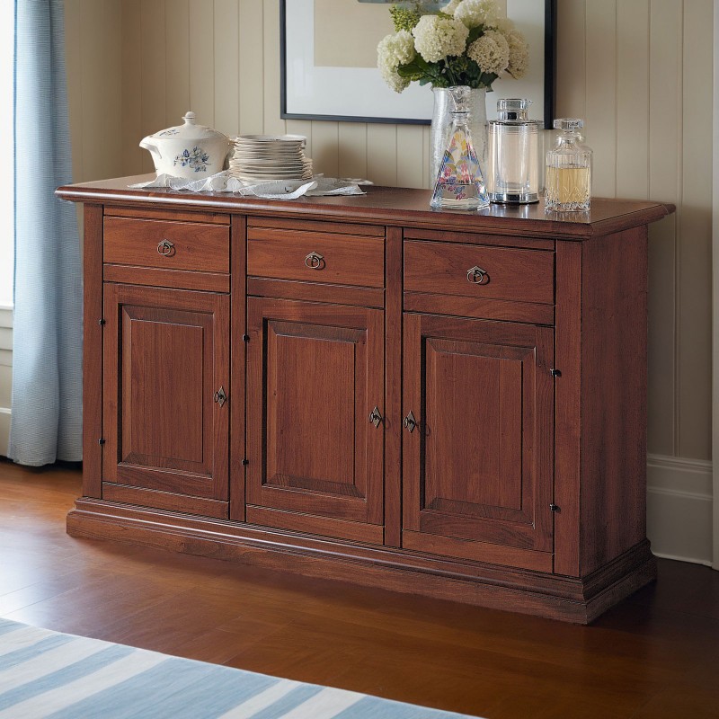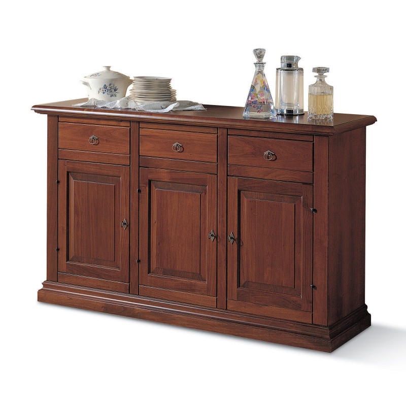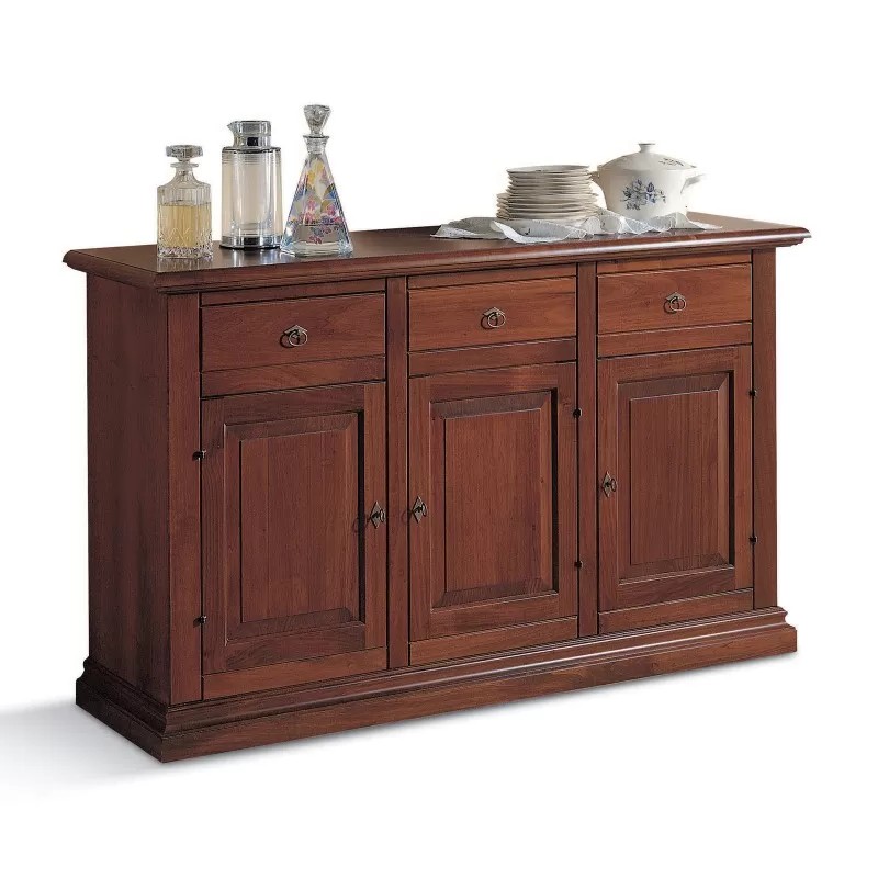 Credenza 3 porte arte povera bugnata legno noce vari colori 162X47X97