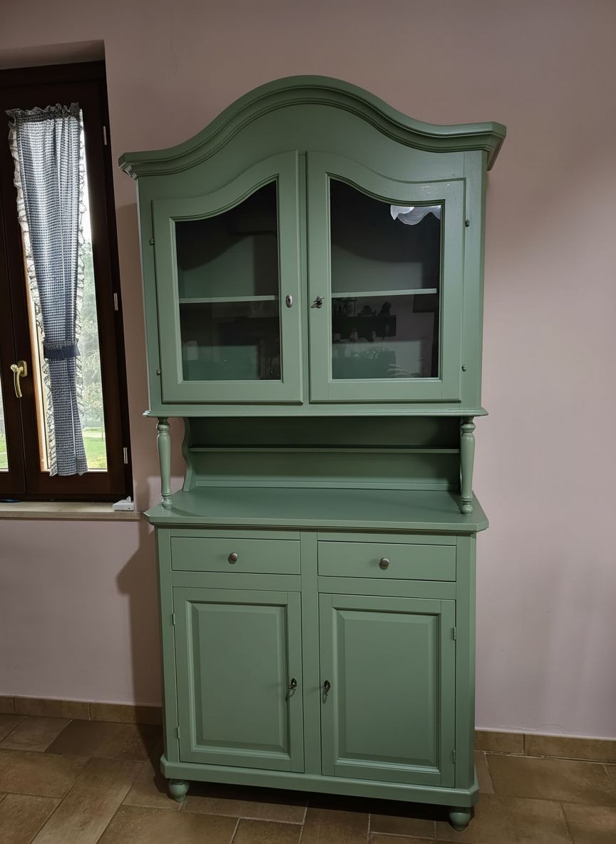 Cristalliera legno 2 porte arte povera verde salvia 104X43X215