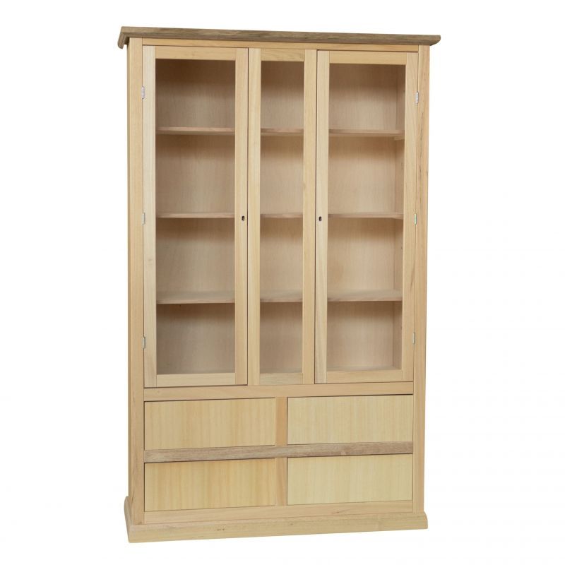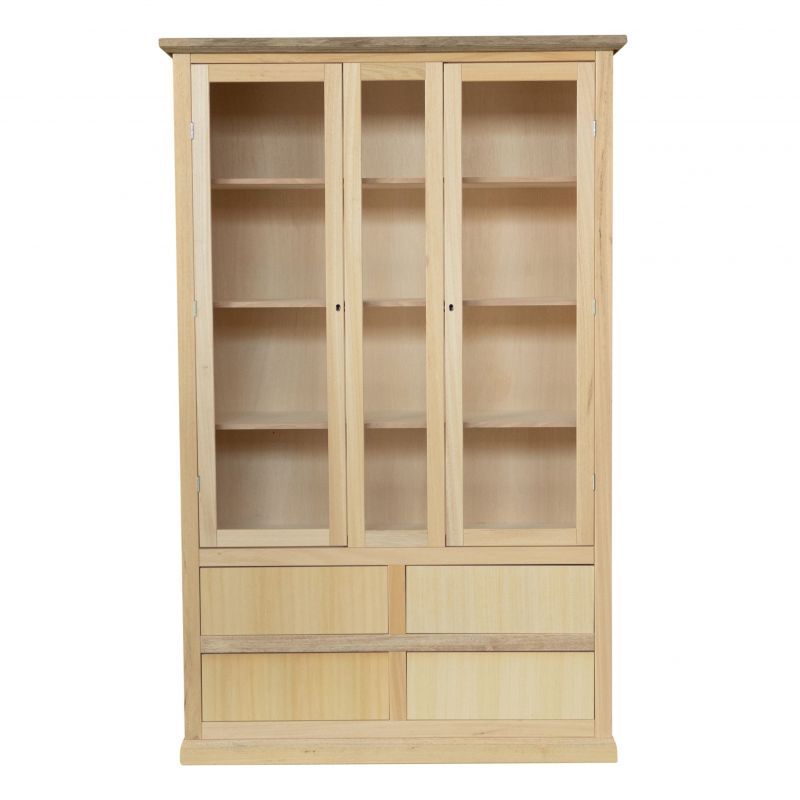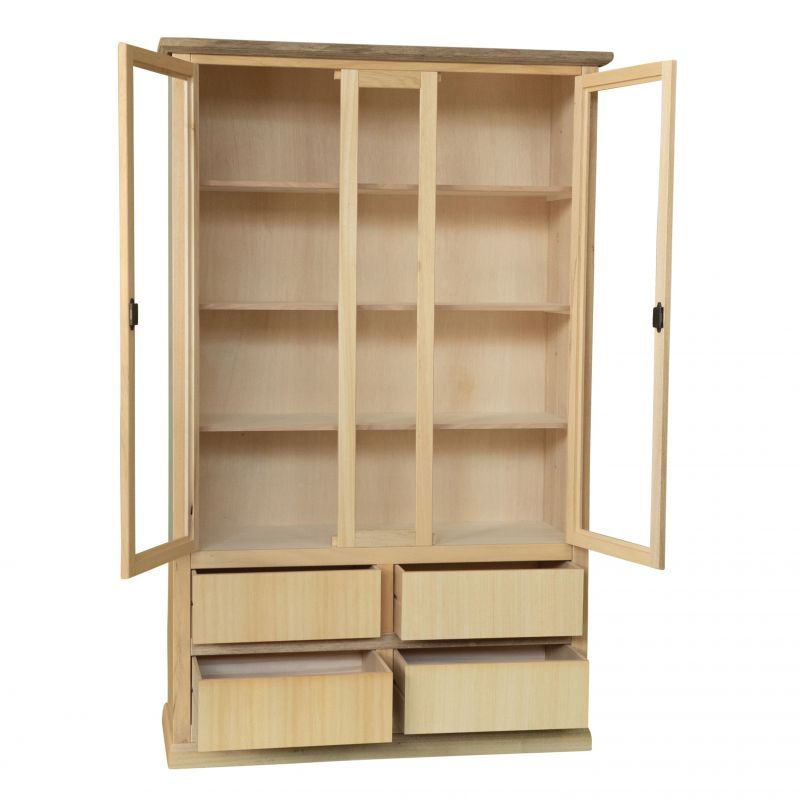 Vetrina arte povera 2 Porte 4 cassetti Legno Grezzo 119X40X185