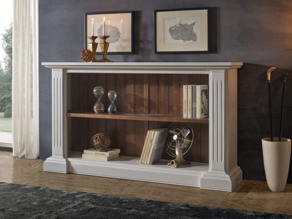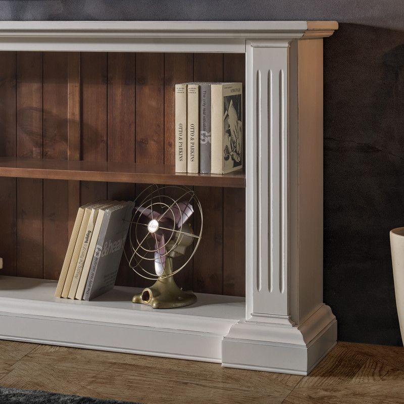 Libreria a giorno legno massello fregi shabby bicolore 177x40x101