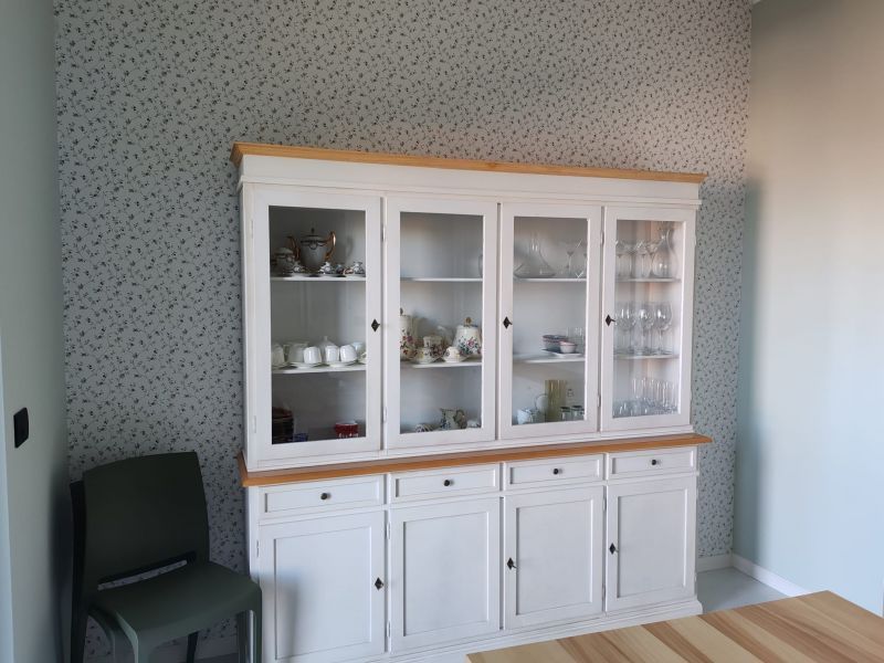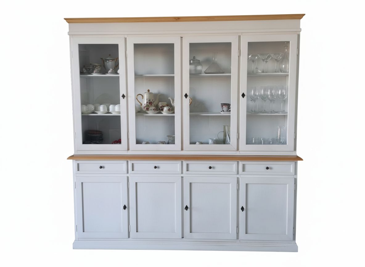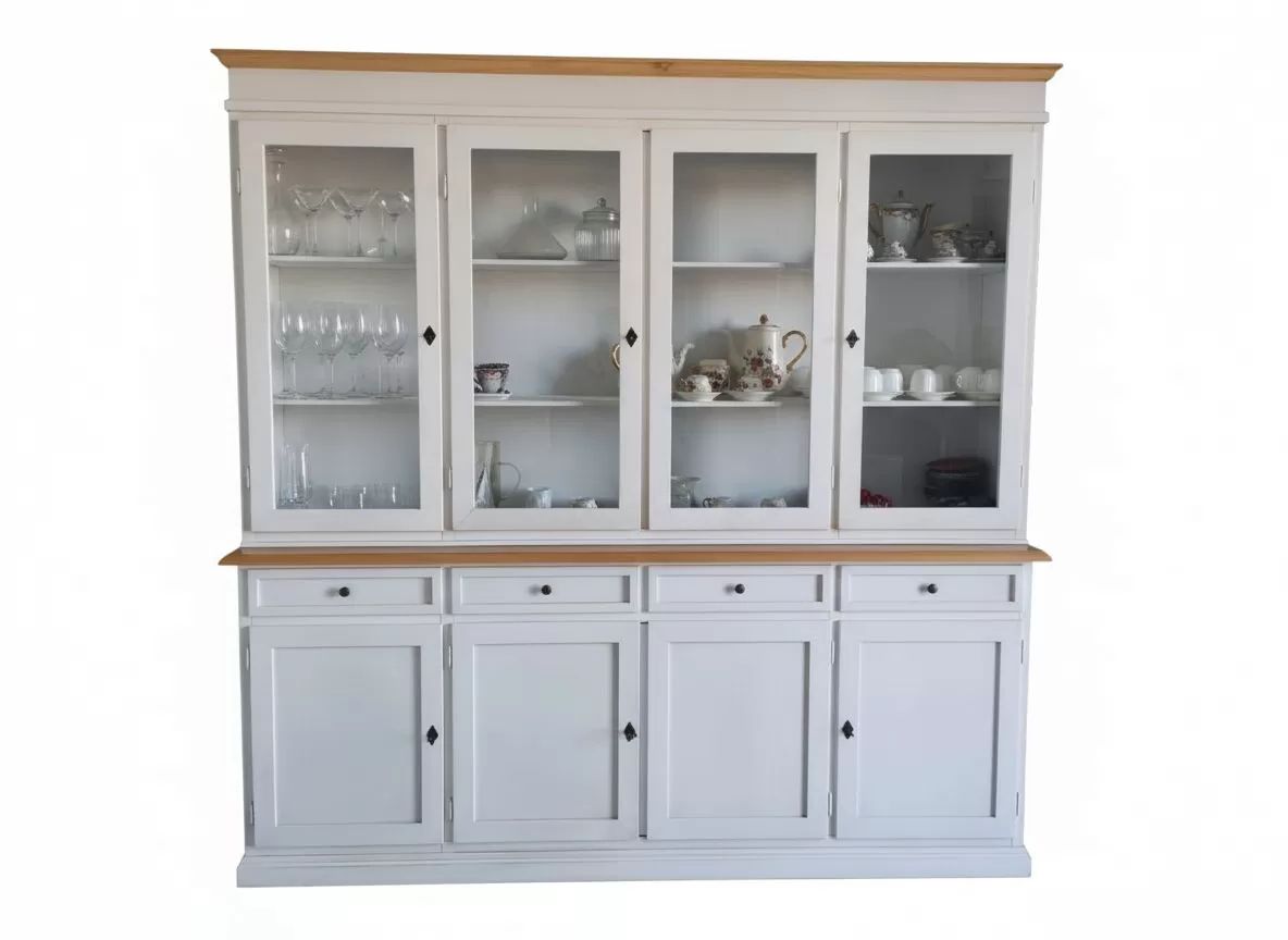 Cristalliera 4 porte shabby legno bianco invecchiato naturale 205X42X205