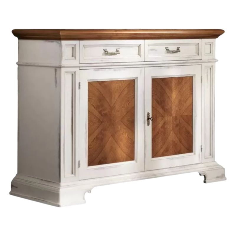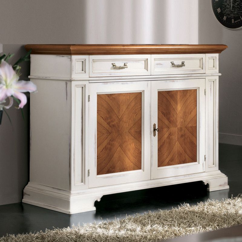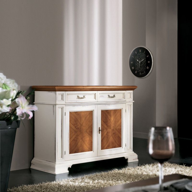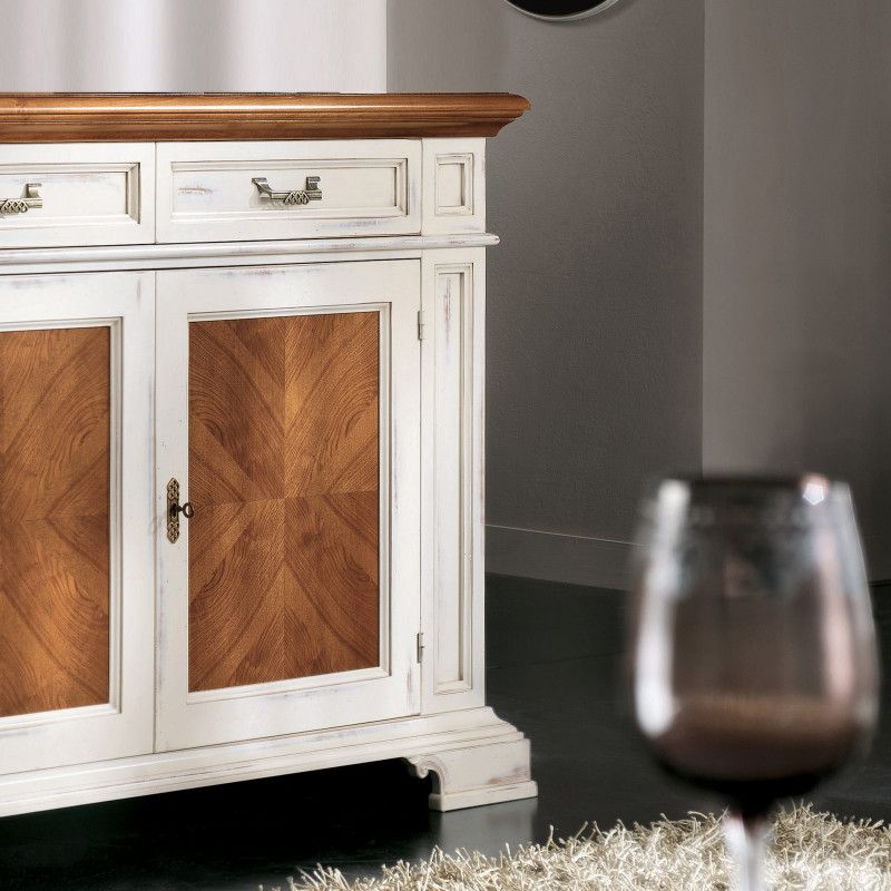 Credenza 2 cassetti 2 porte con intarsi 1 ripiano interno