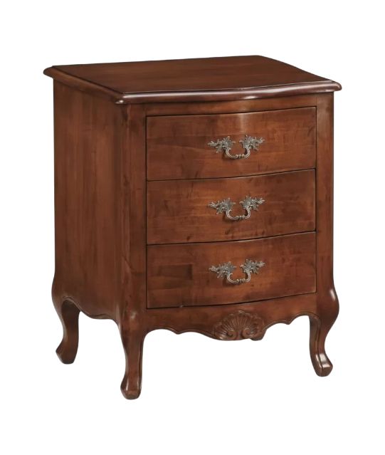 Comodino sagomato costruito in legno con gambe a sciabola. Cassettiera dotata di tre cassetti per riporre all'occorrenza biancheria intima e oggetti. Trovano facilmente posto nella zona notte proteggendo con i suoi cassetti il suo contenuto all'interno. Unica nel suo genere con il suo particolare intaglio dando un tocco a un' atmosfera dallo stile unico e originale .