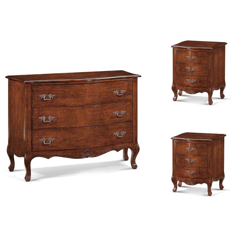 Cassettiera 3 cassetti classica legno massello tinta noce bassano 132x55X89