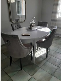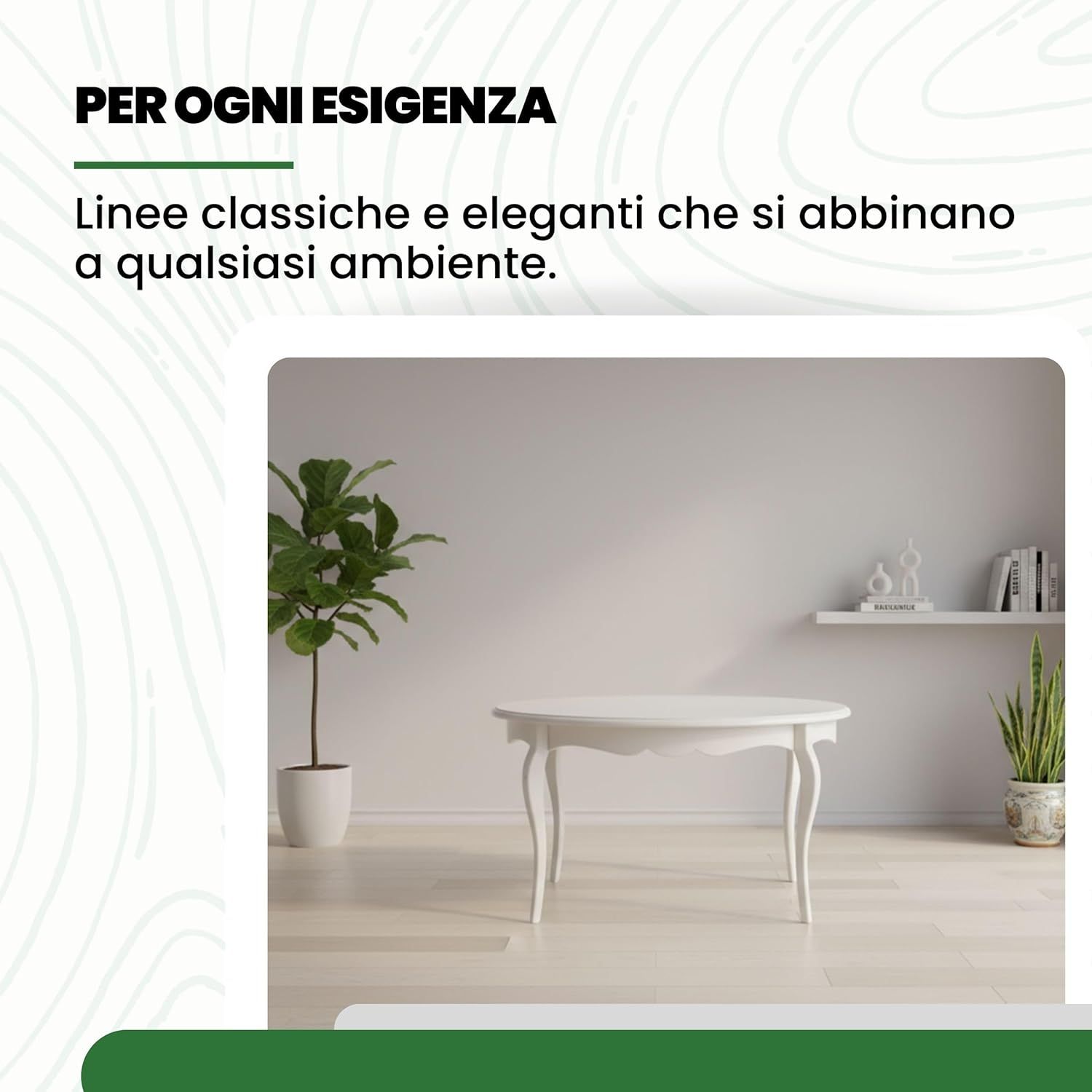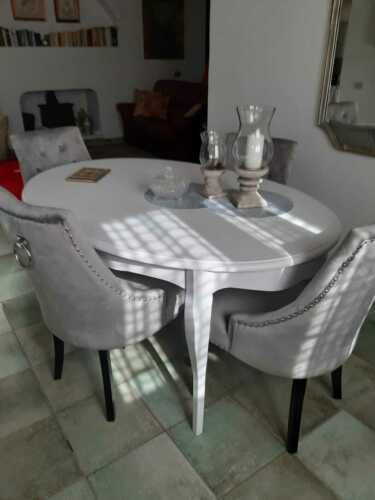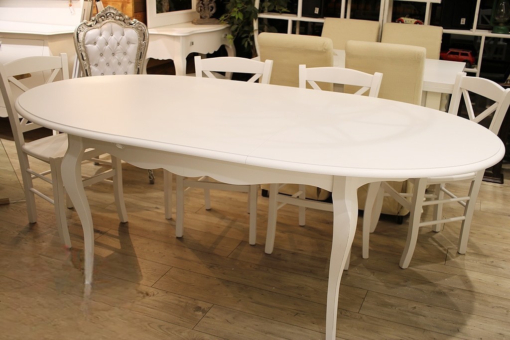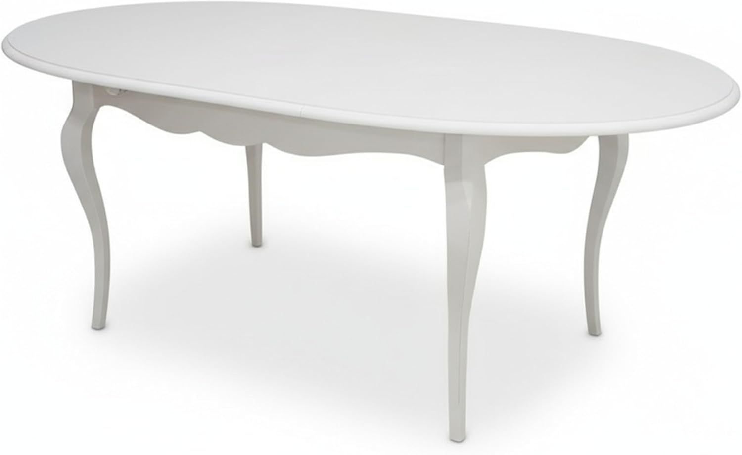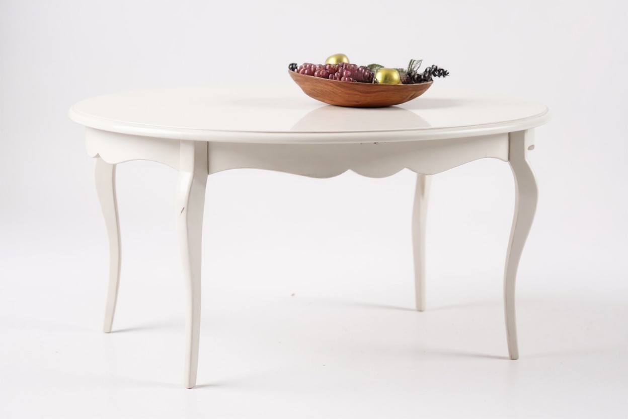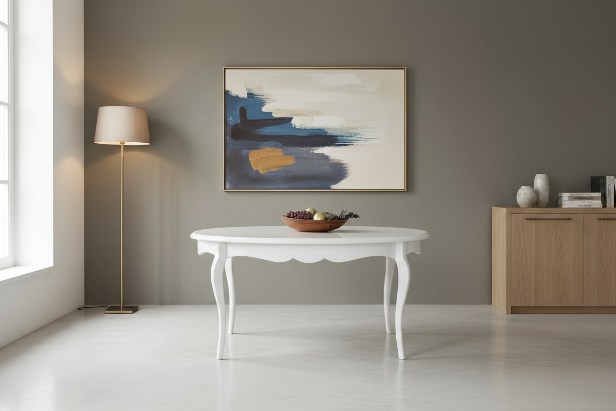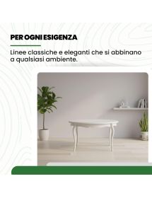 Un tavolo ovale allungabile come soluzione equilibrata per arredare la zona living con uno stile classico ma luminoso. La forma ovale ammorbidisce le linee dell’ambiente, mentre la finitura bianco opaco contribuisce a rendere lo spazio più arioso e ordinato. Una presenza discreta che si integra facilmente con arredi tradizionali o shabby.