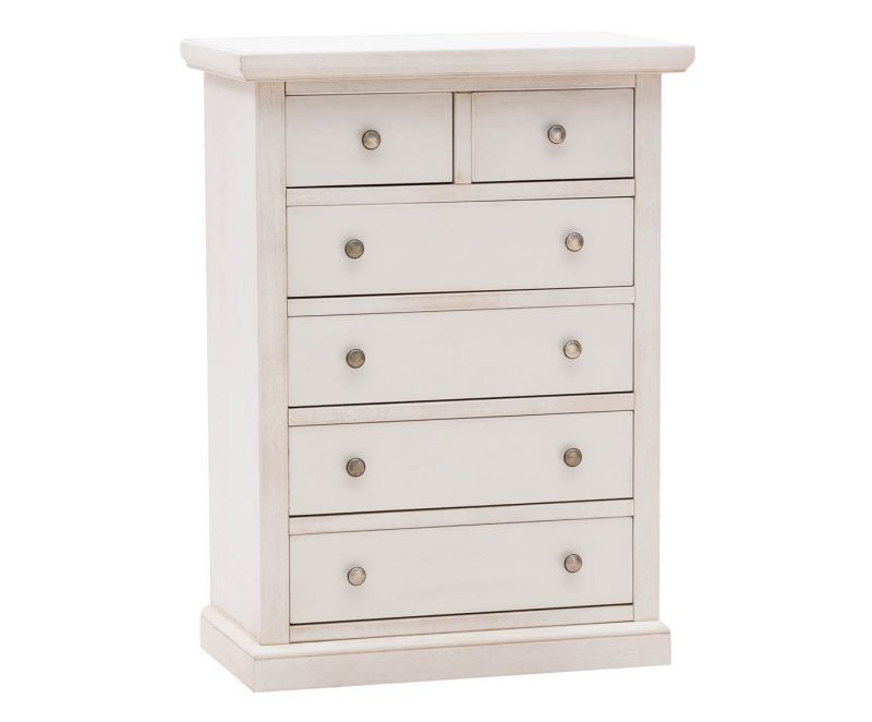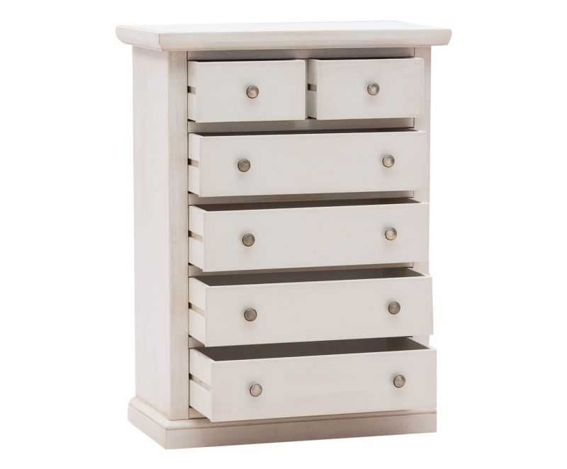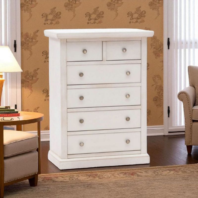 Cassettiera 6 cassetti legno shabby bianco anticato pomoli argento 62x37X93