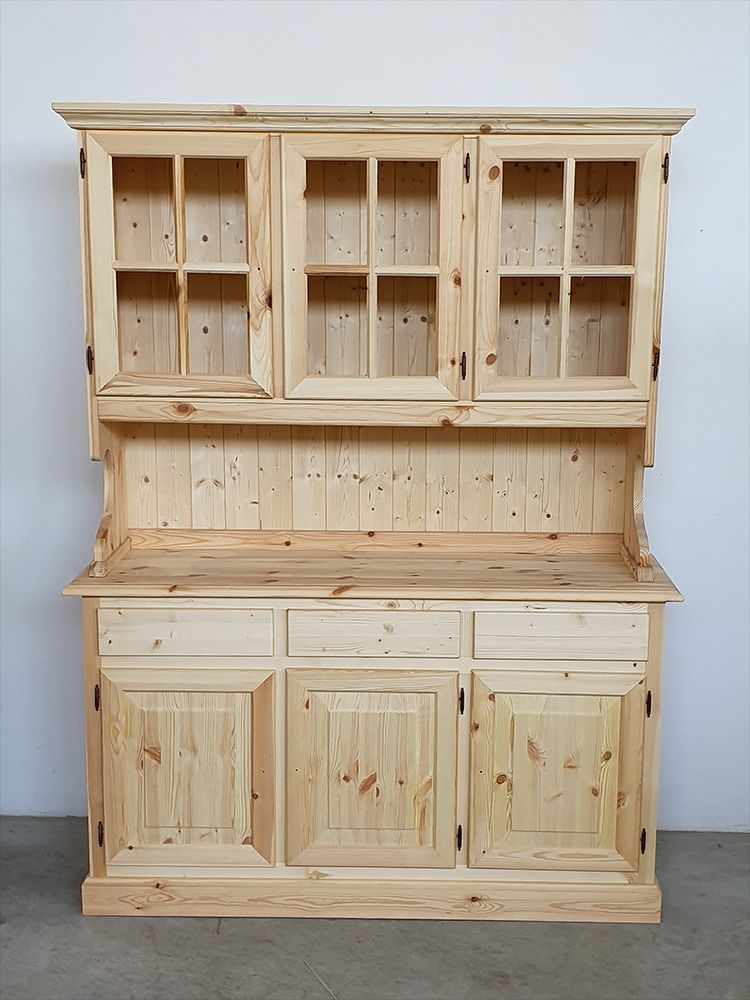 Cristalliera 3 ante legno di pino massello grezzo L.147 P.43 H.195