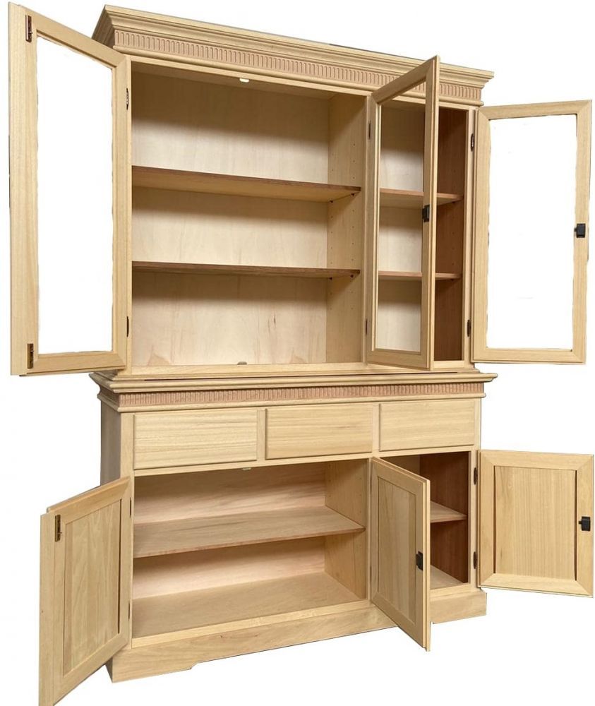 Mobili grezzi non sono rifiniti, consegnati con legno al naturale - non verniciato - e privi di maniglie, pomoli o chiavi e vetri.