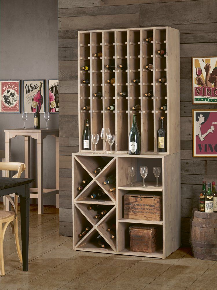 Cantinetta porta bottiglie Legno abete grigio chiaro venato 92x35/50x210
