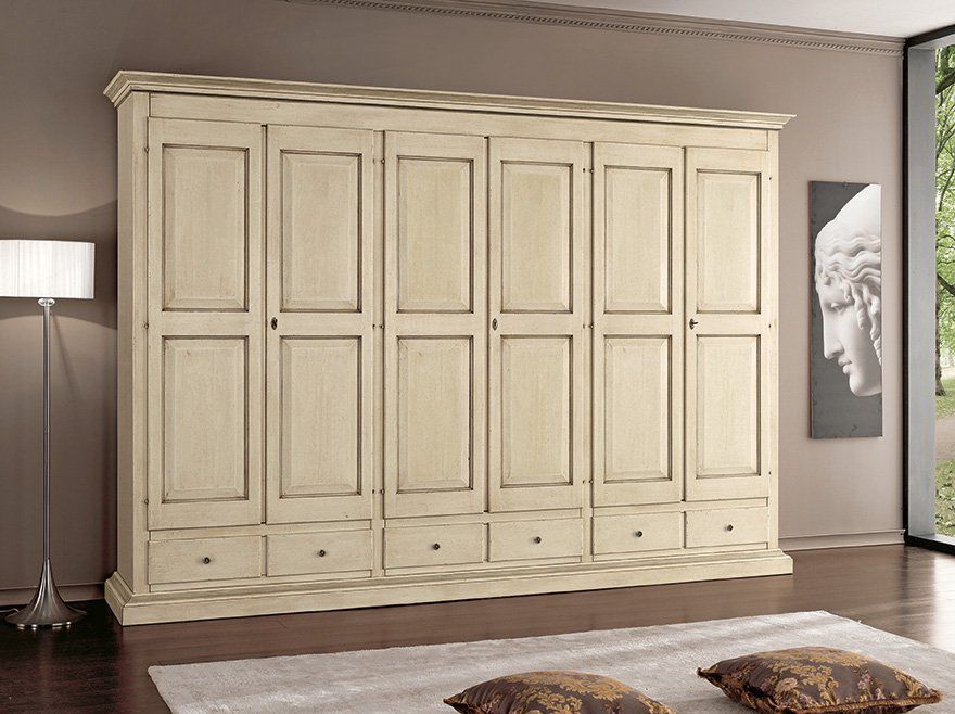 Armadio 6 porte classico in legno shabby vari colori 300x61x240