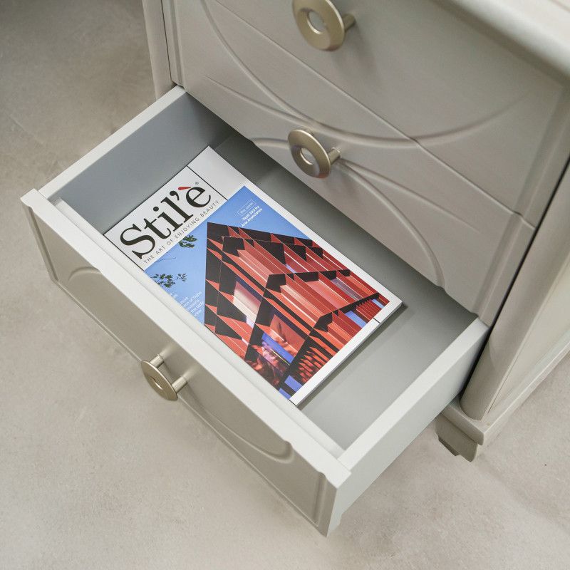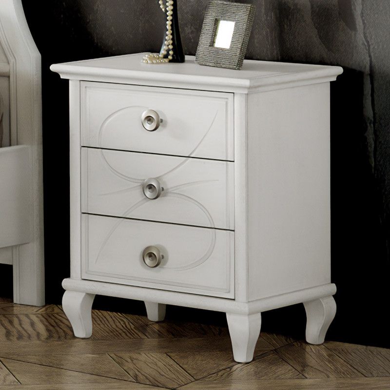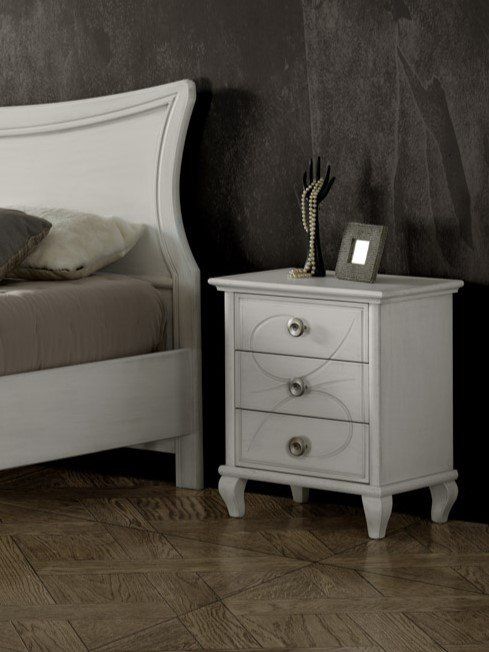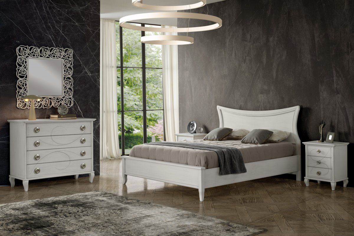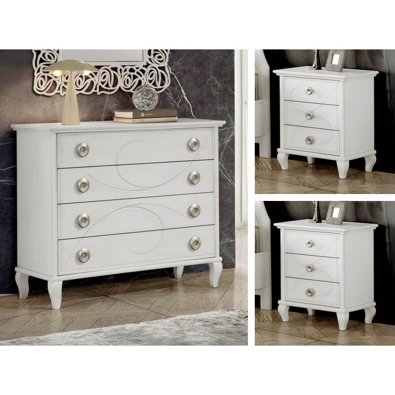 Gruppo 1 Cassettiera 2 Comodini classico legno bianco incisioni