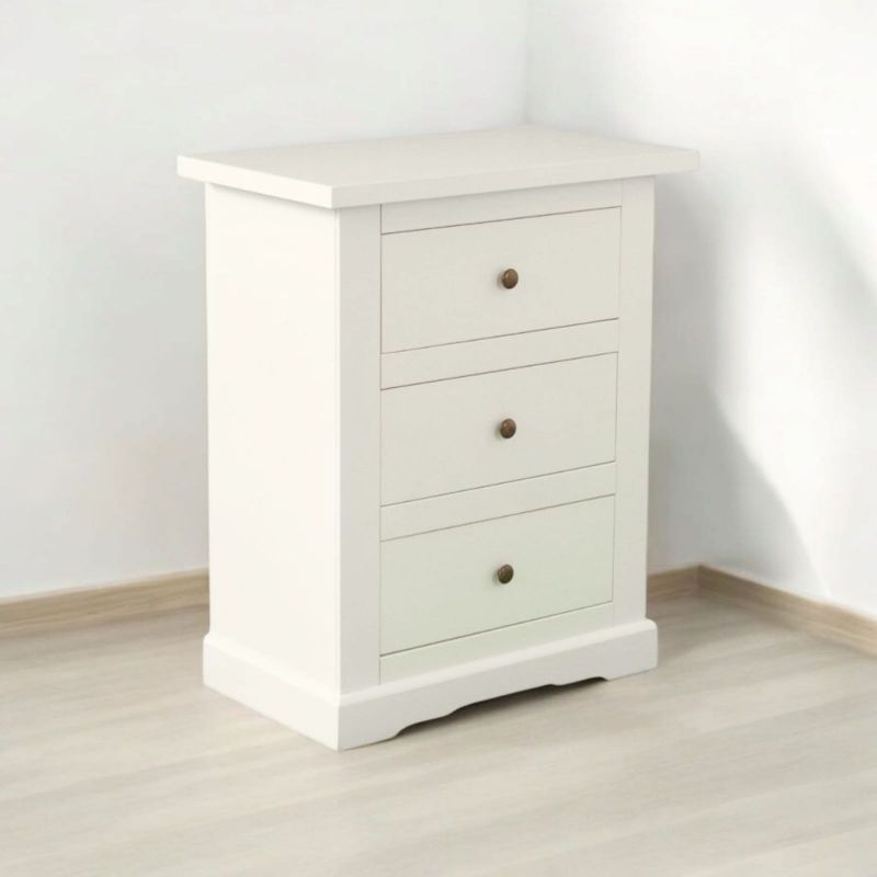 Comodino arte povera legno bianco 3 cassetti 60X35X70