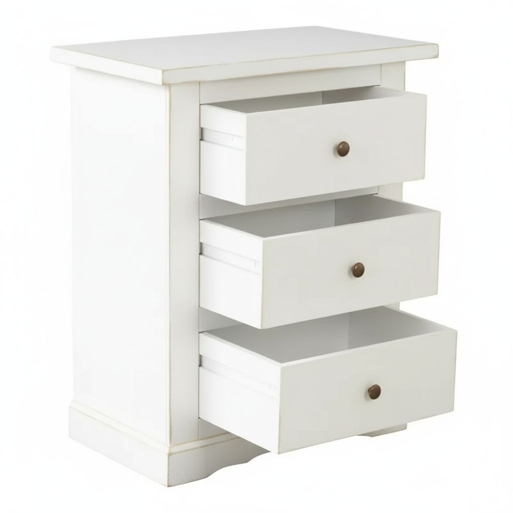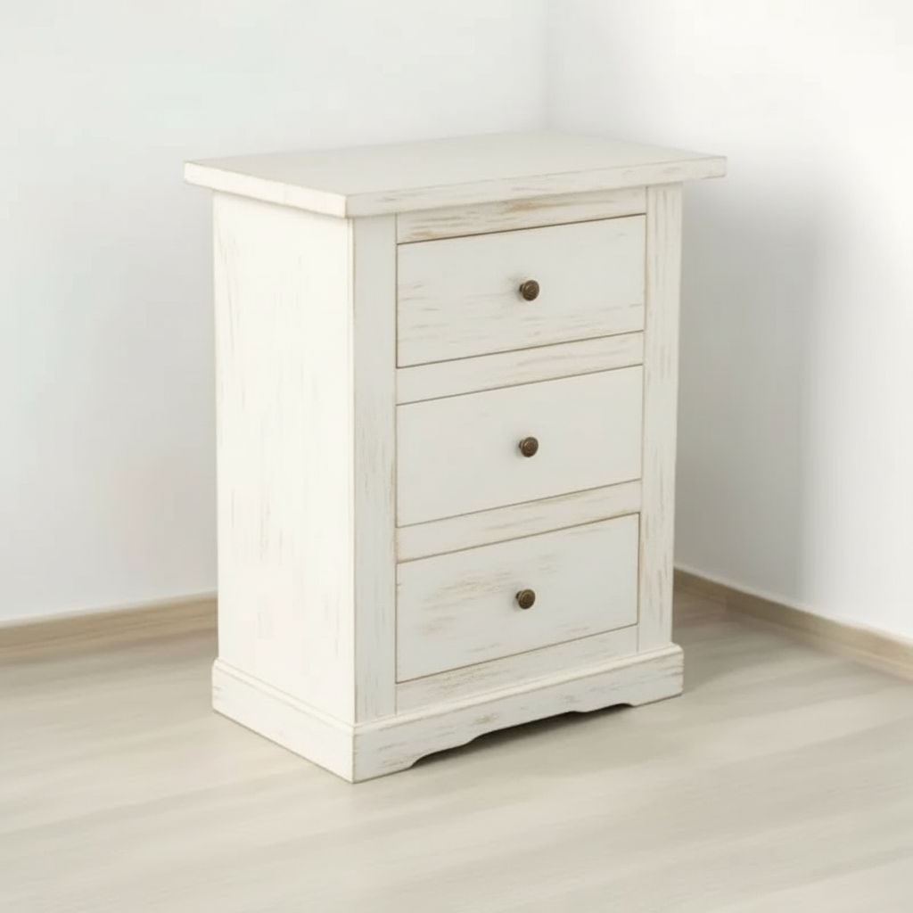 Comodino arte povera legno bianco anticato 3 cassetti 60X35X70