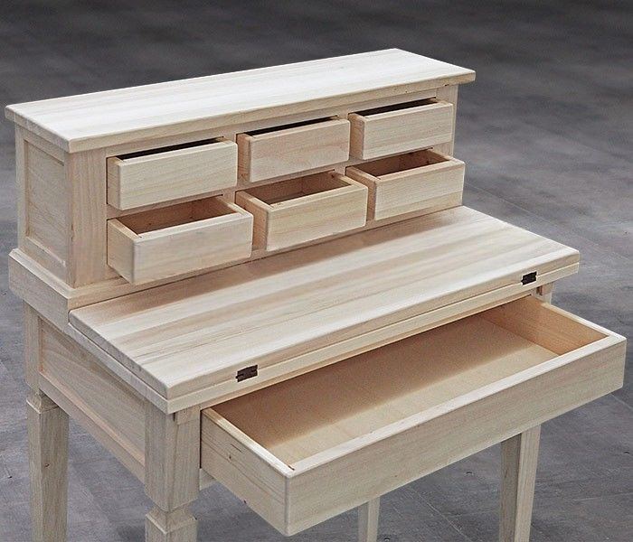 Scrivania 7 cassetti con piano estraibile legno grezzo 73X42X98