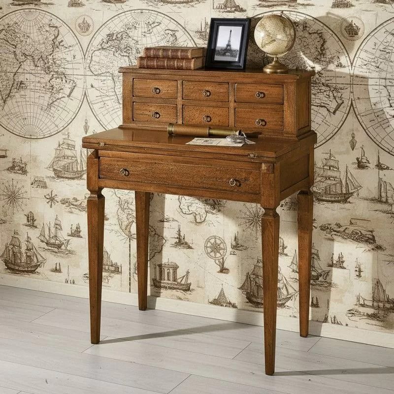 SCRITTOIO SCRIVANIA 7 CASSETTI FINITURA GREZZA CON PIANO ESTRAIBILE