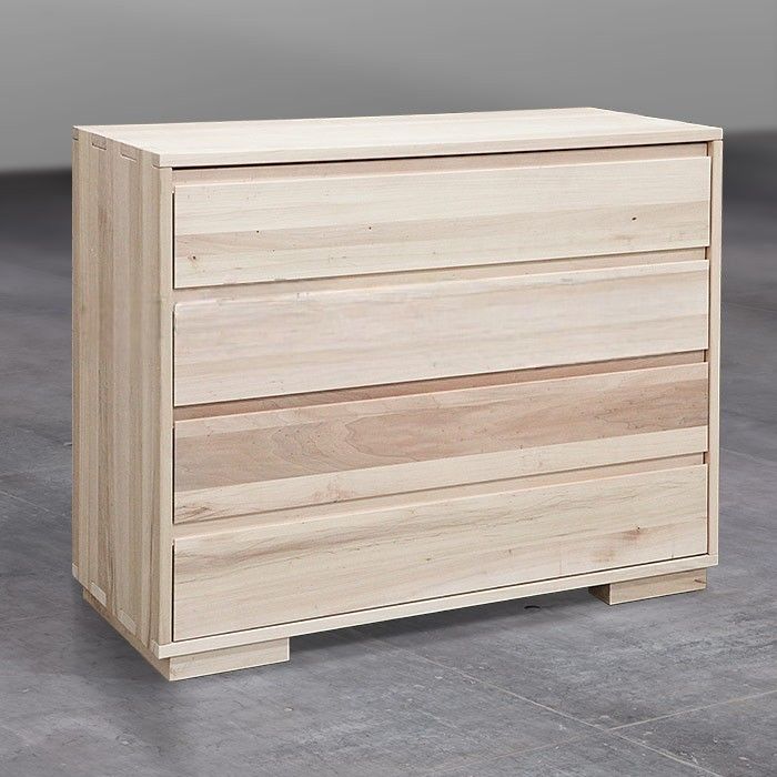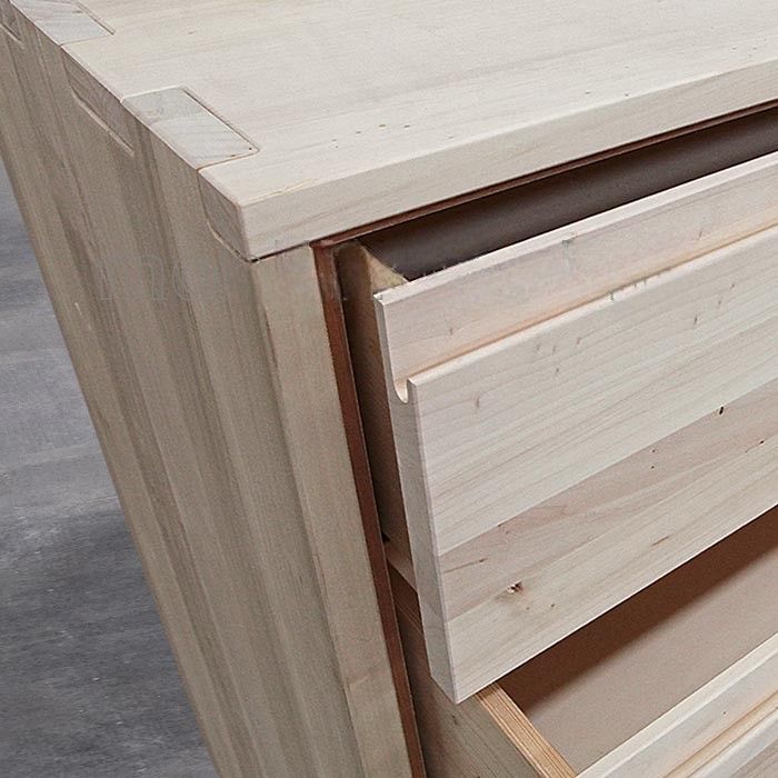 Cassettiera 4 cassetti ammortizzati legno massello grezzo 128x53x100