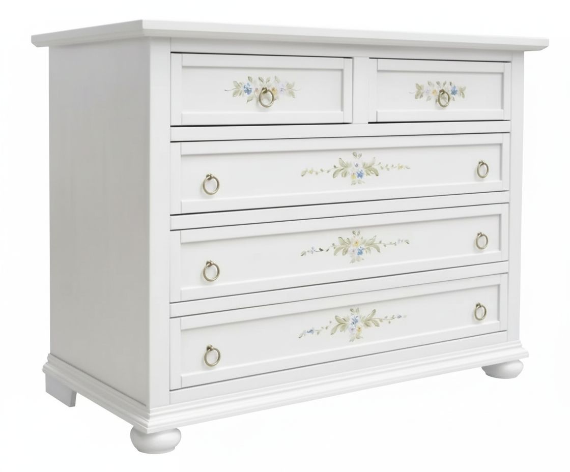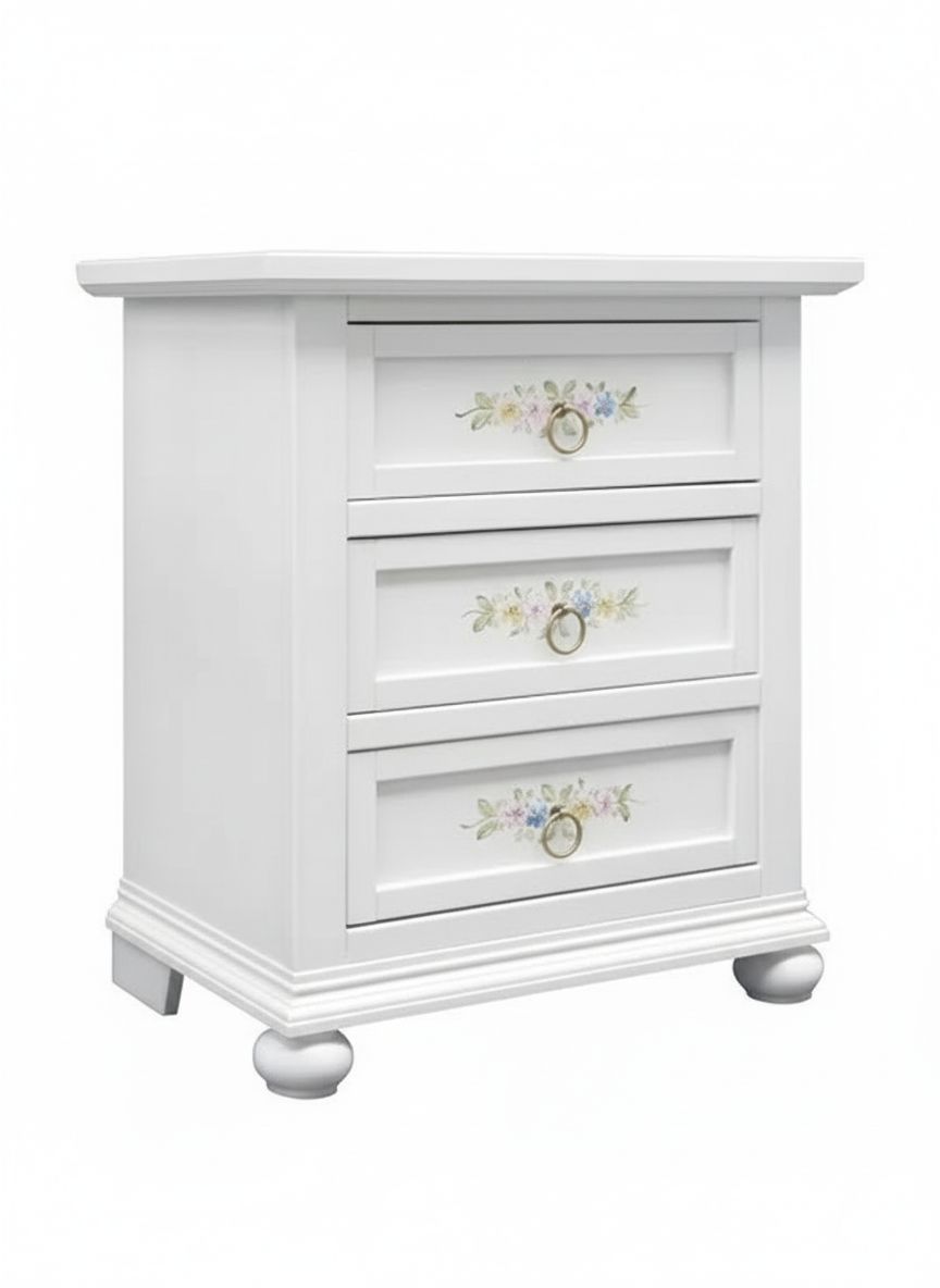 FINITURA : Verniciato laccato bianco opaco con decori floreali
